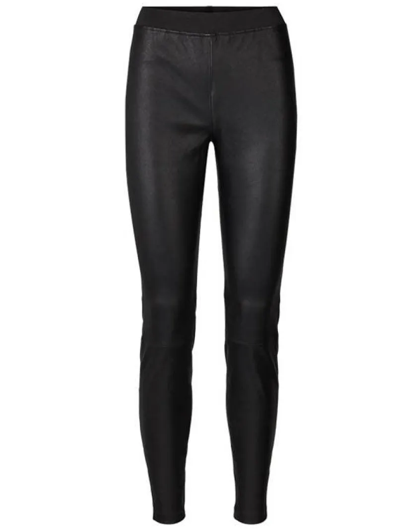 Super lækre skind leggings med bred elastik i taljen. Rigtig god fitting. Rå kanter forneden så de kan lægges op, hvis nødvendigt. Et absolut musthave fra Lollys Laundry.