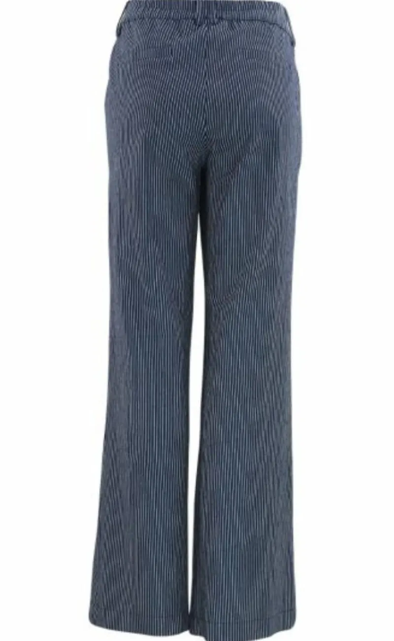 Smarte bukser i blå med små hvide striber. Bukserne har også vide ben