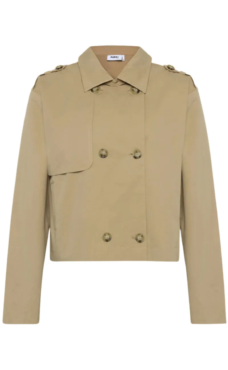 Kort trenchcoat fra Moves i brun.