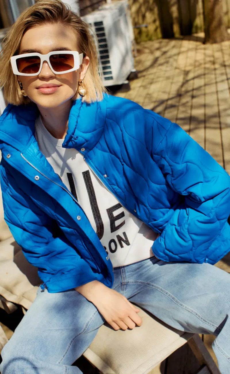 Quiltet jakke fra Freequent i en dyb blå, med et stilrent look.