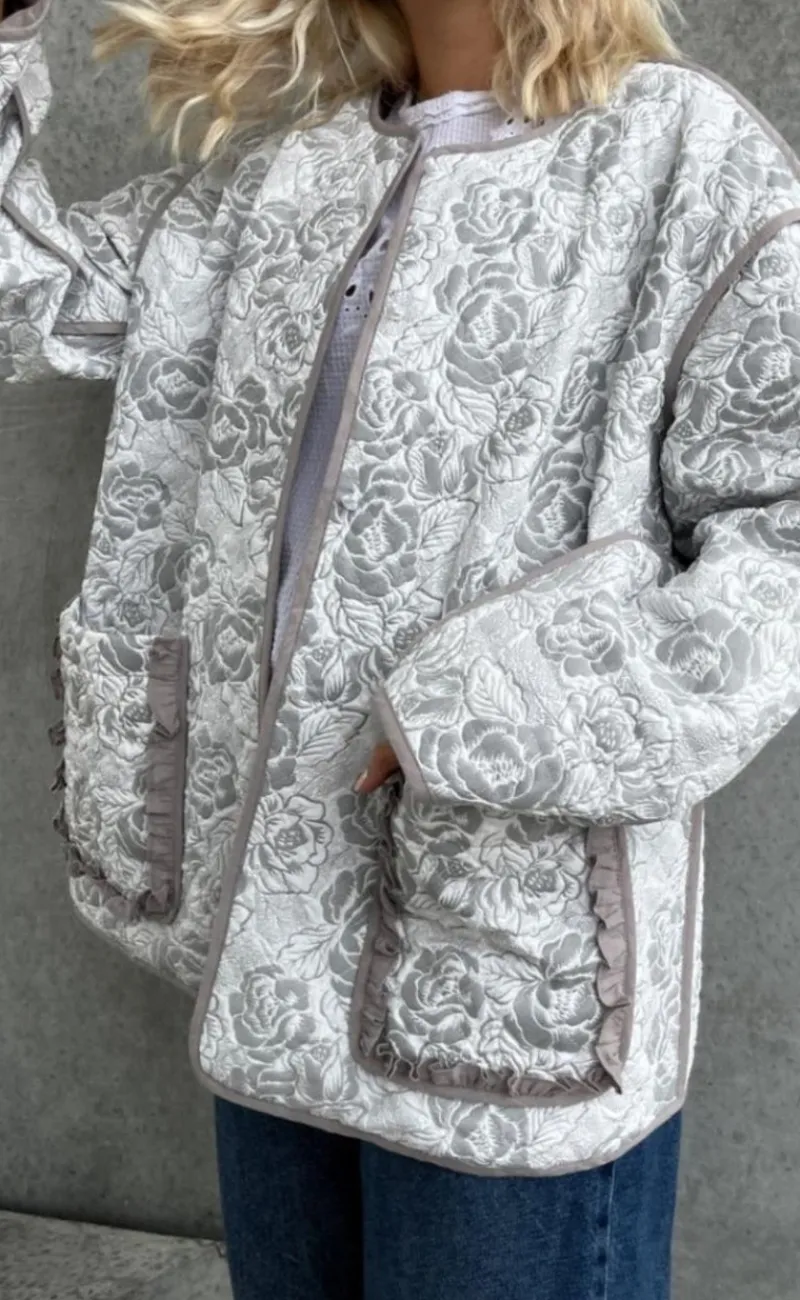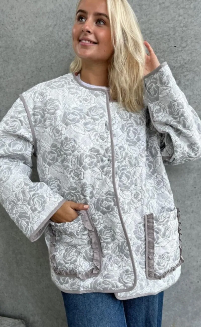 Pæn og feminin jakke i et quiltet blomsterdesign.
