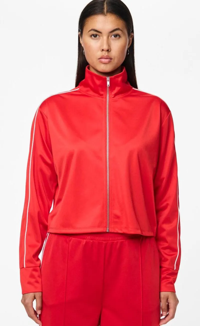 Track jakke fra Pieces i en flot rød farve. Grace jakken lukkes med lynlås og har et behageligt fit.