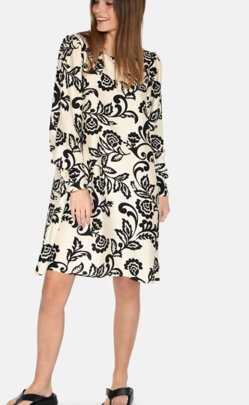 Fin og elegant kjole i sort og hvid.