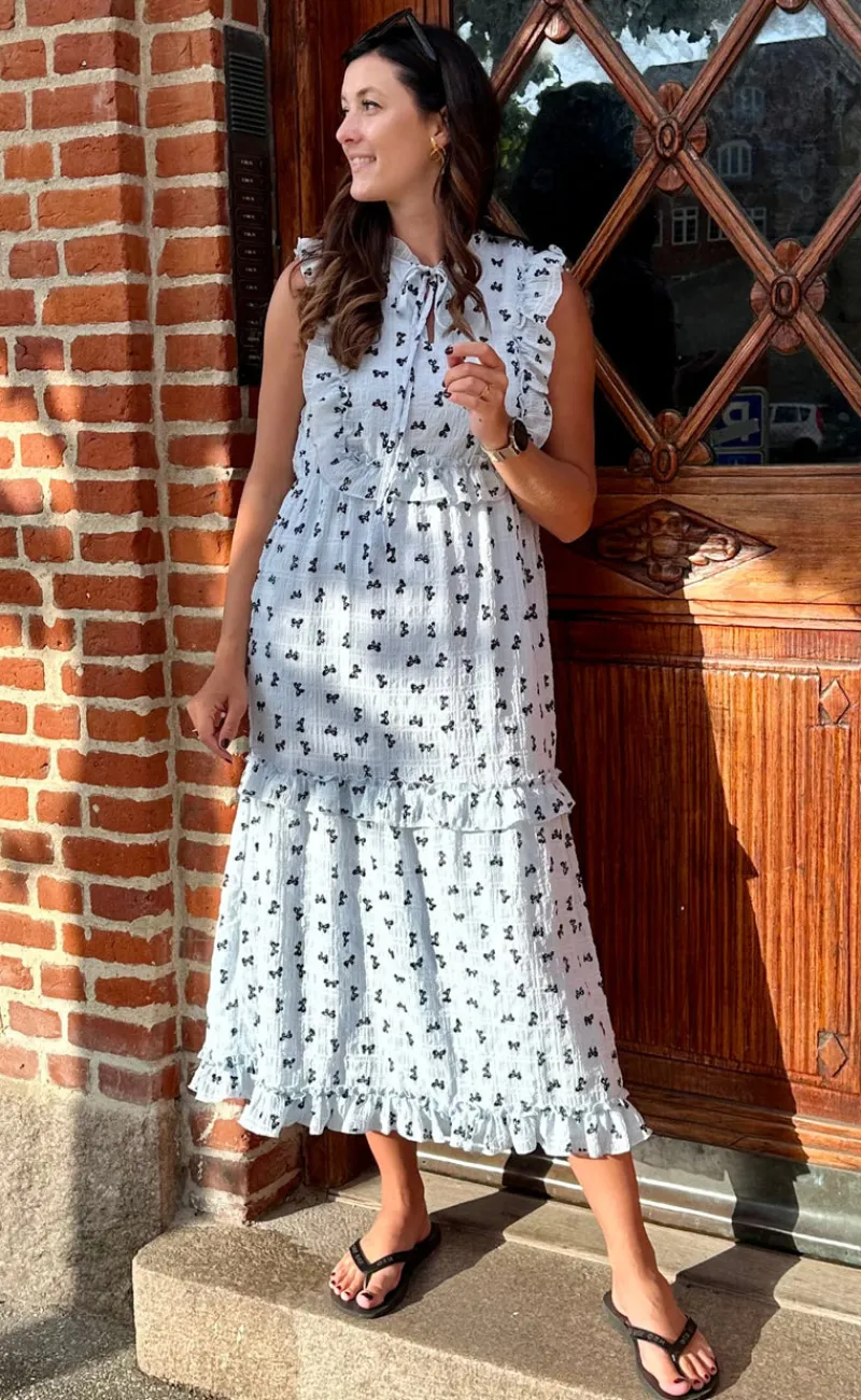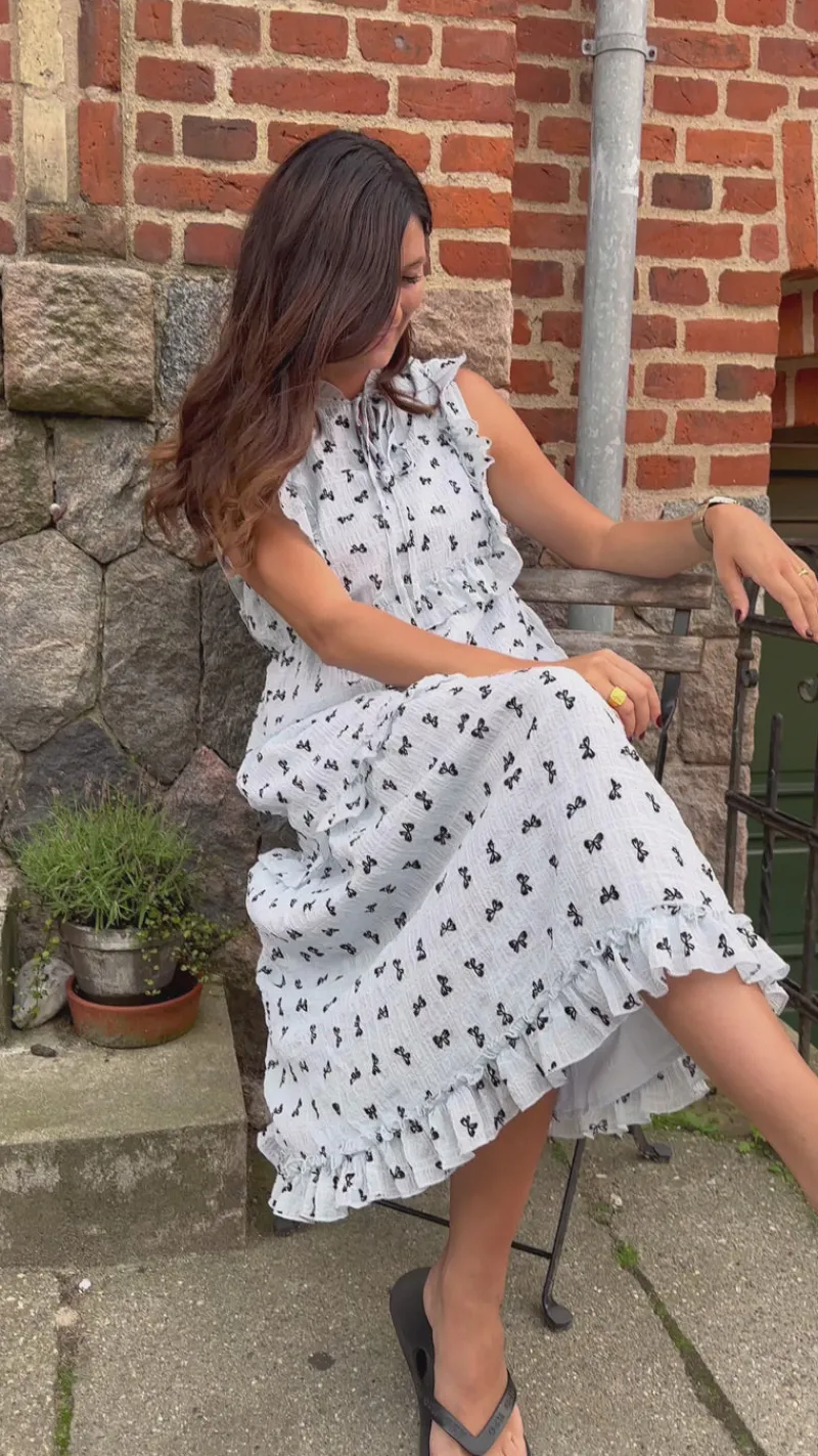 Den smukkeste kjole fra INA Copenhagen i lyseblå med sorte sløjfer.