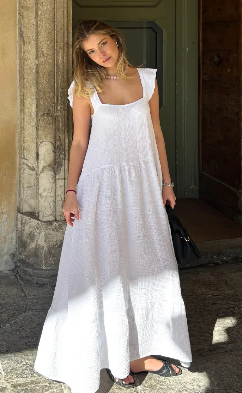 Yndig og let kjole fra Noella i hvid, med smukke detaljer.