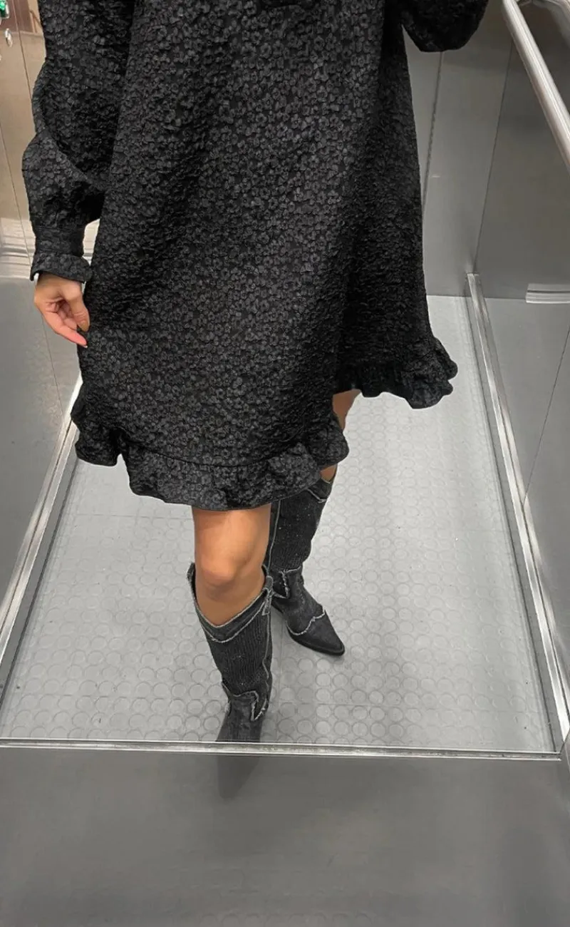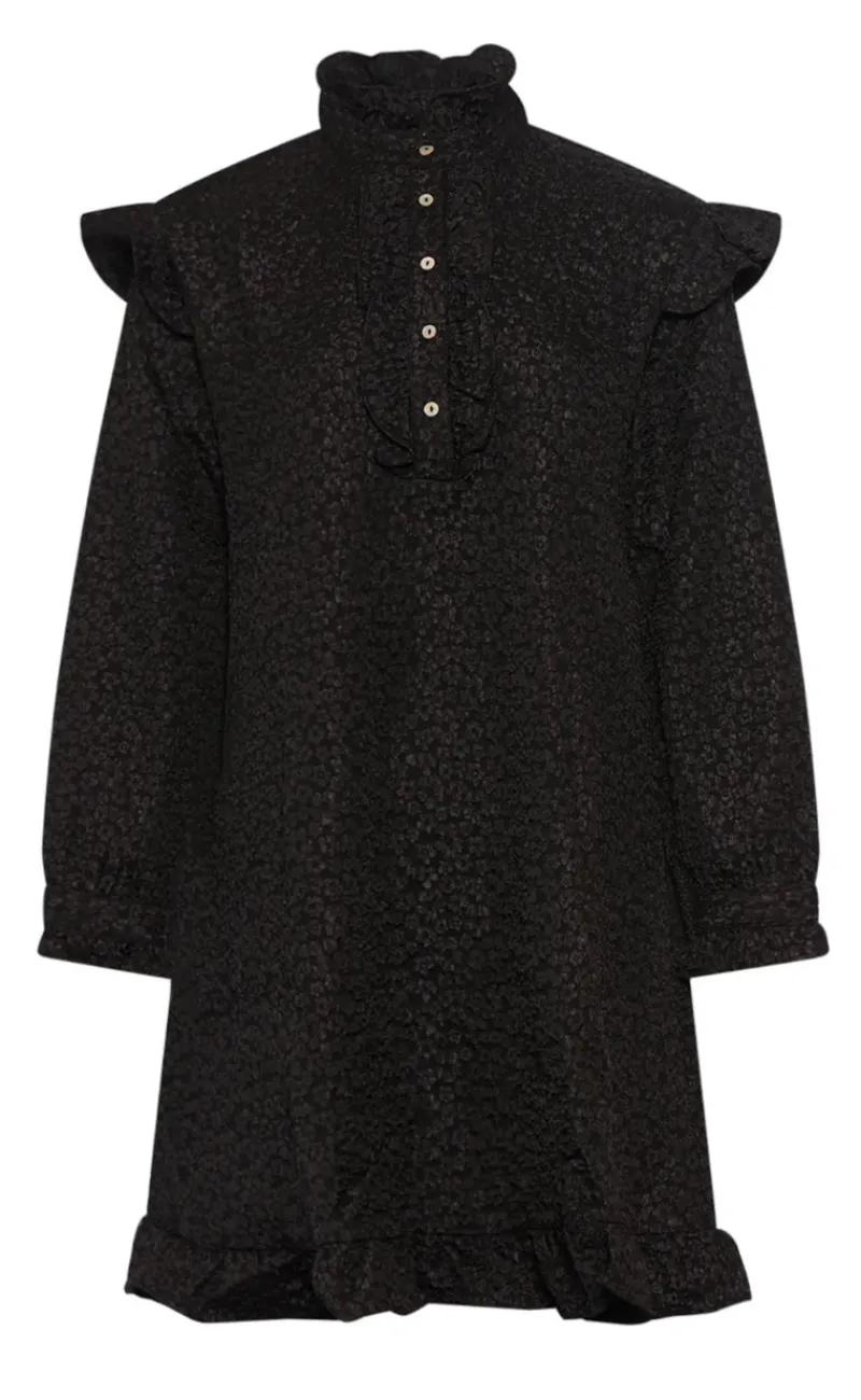 Feminin kjole fra Noella i sort med et diskret blomsterprint.