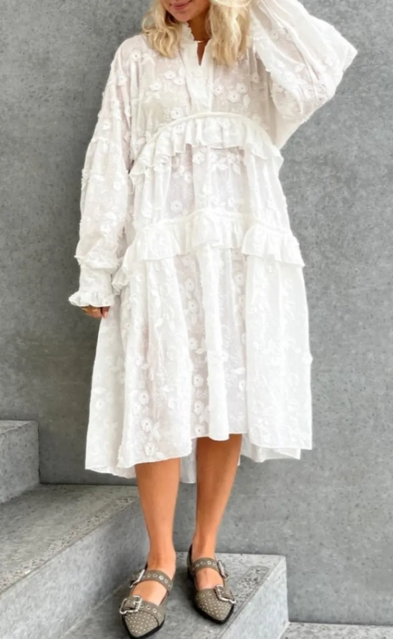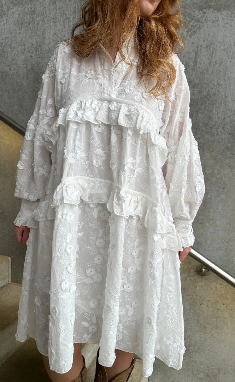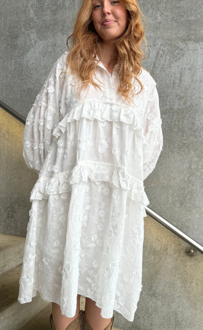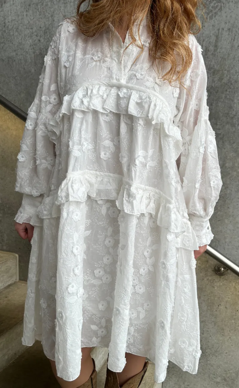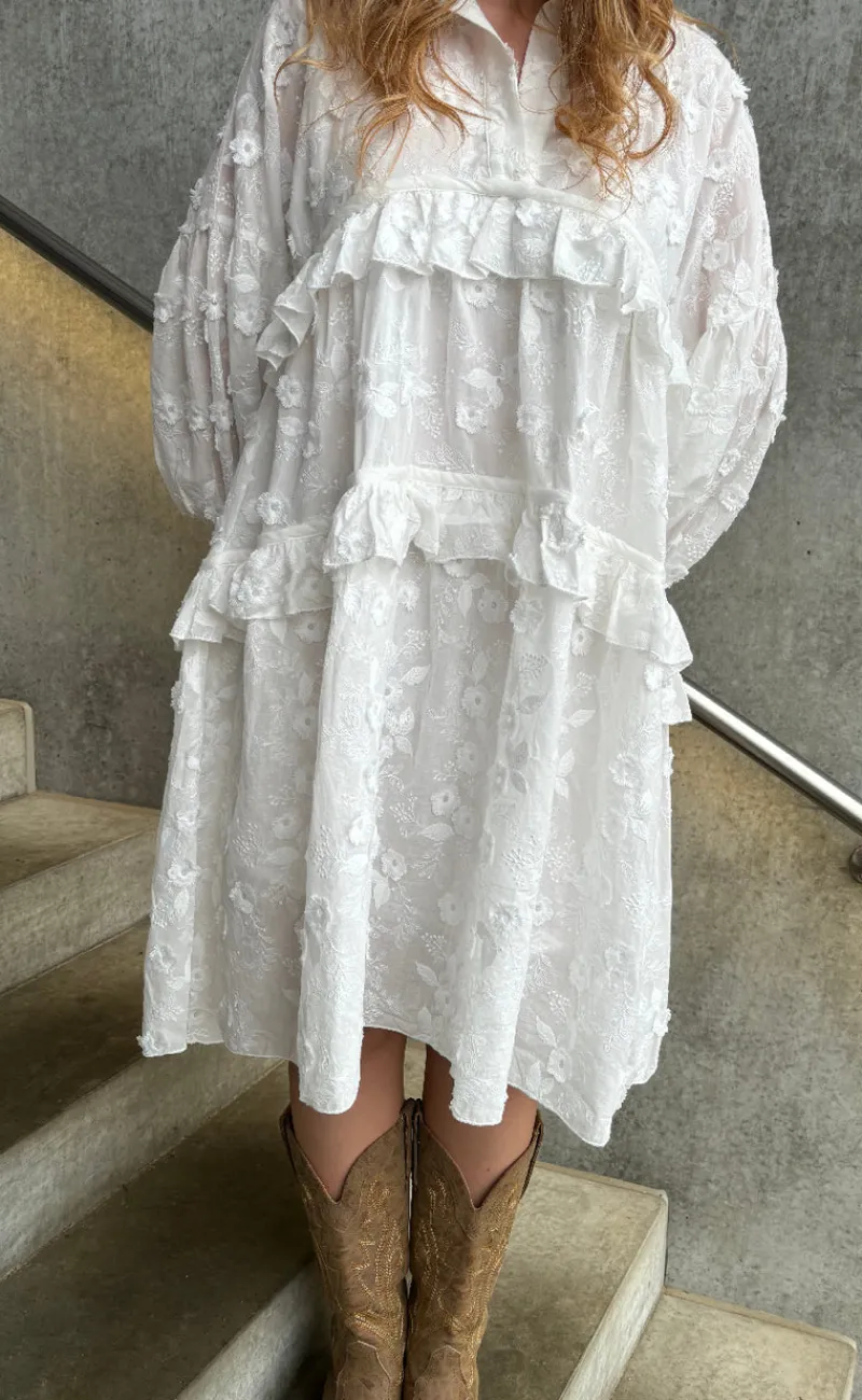 Denne hvide bomuldskjole er både sød og behagelig.