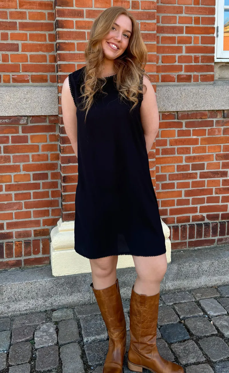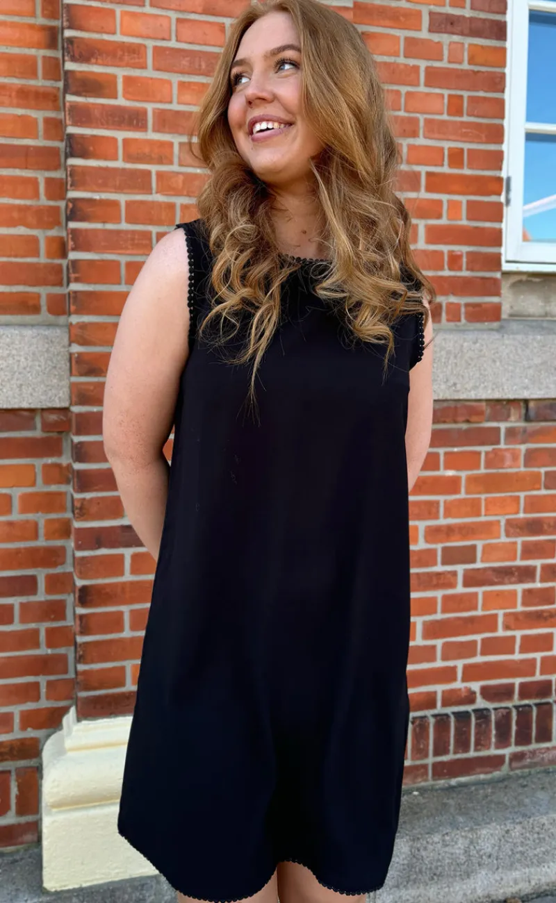 Moderne og simpel kjole fra INA Copenhagen i sort, med et fint fald.