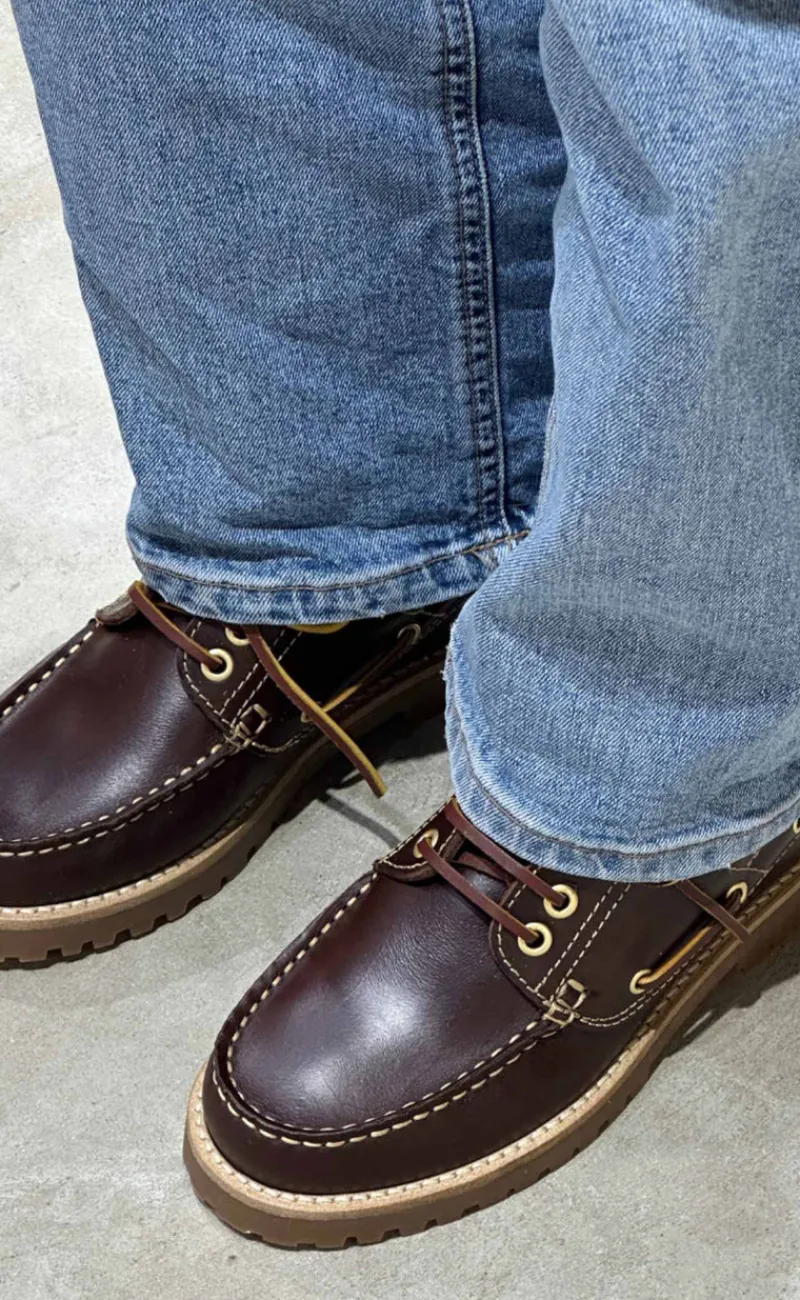 Moderne loafers fra Phenumb i brun, med fede kontrast syninger.