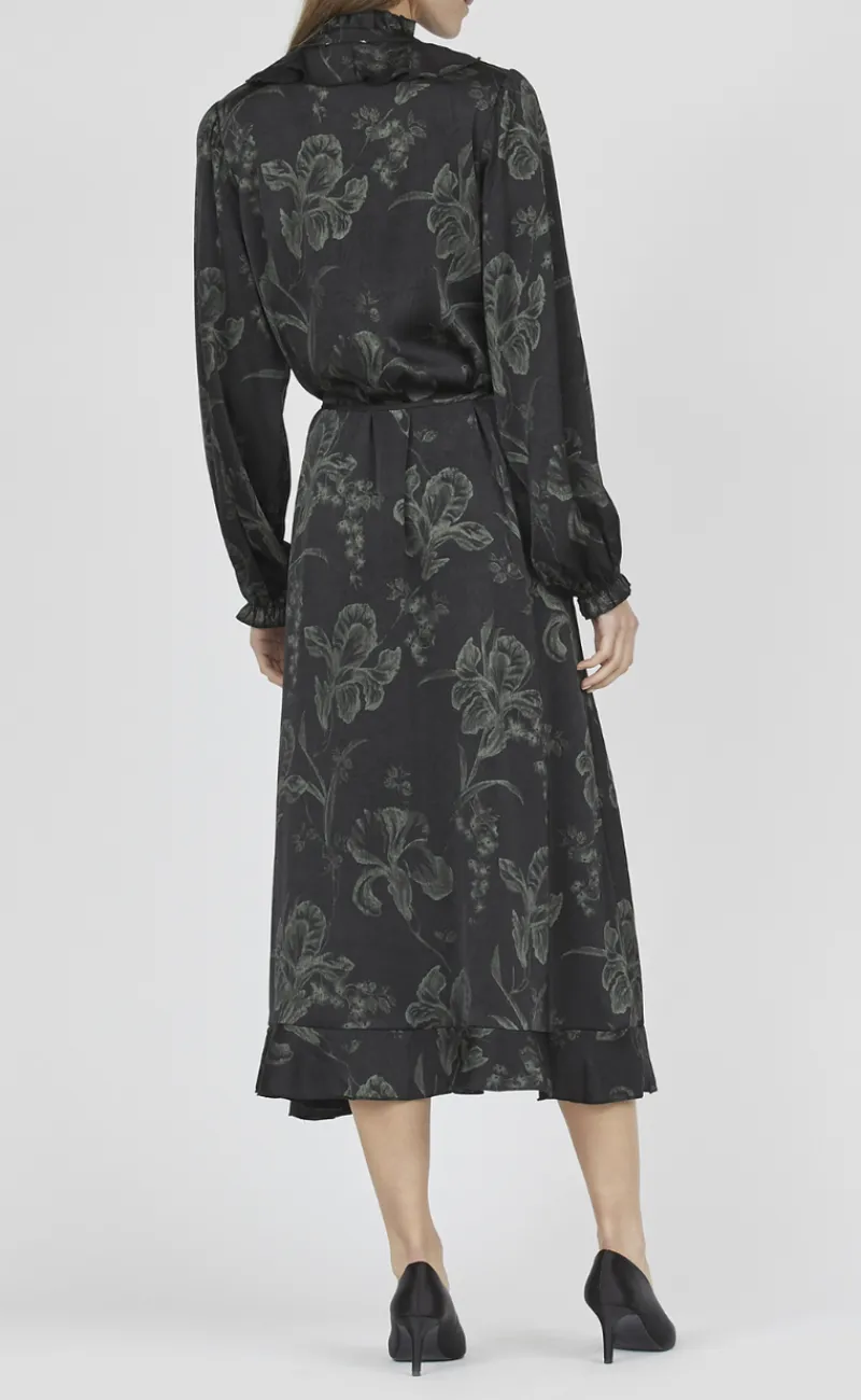 Fin og sød kjole i sort, med grønne blomster.
