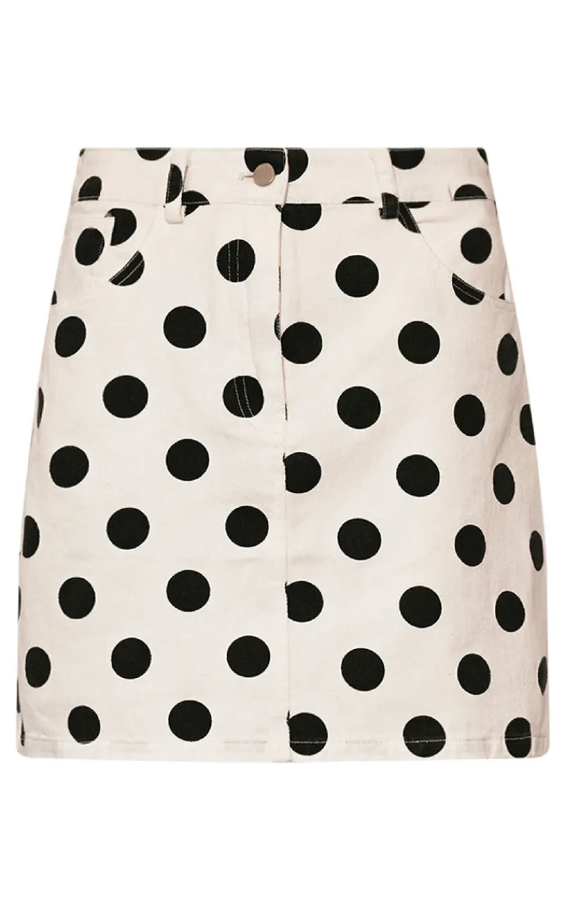Kort nederdel fra Noella i hvid med sorte prikker.