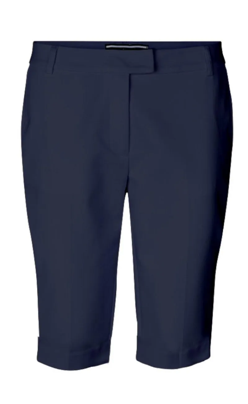 Lækre Shorts fra FreeQuent i mørkeblå. Shortsene har lommer i begge sider, bæltestropper og de lukkes med en lynlås og knap.