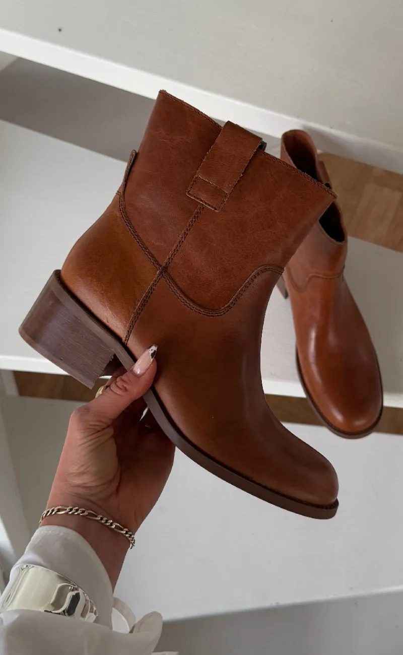 Korte støvler fra Phenumb i en lækker cognac farve, med fine detaljer.