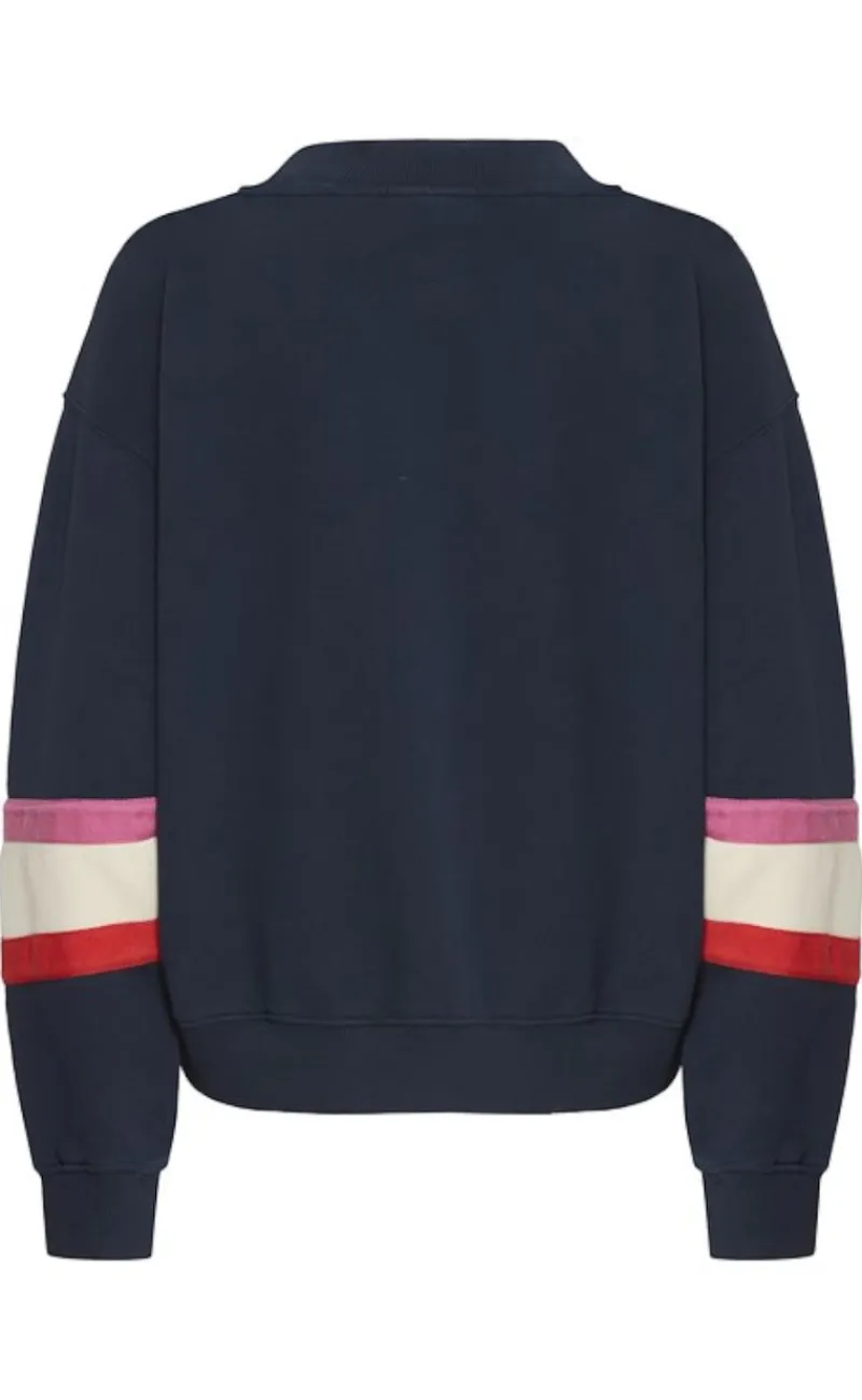 Sweatshirten har en behagelig pasform og et logo i midten.