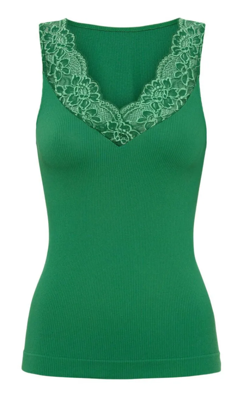 Lækker blød top. en frisk farve, og med en blonde udskæring.