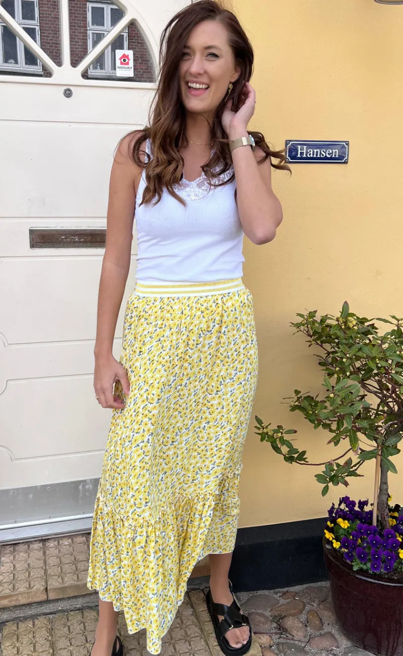 Toppen har en smuk blonde V-udskæring. Toppen er vendbar, så man selv vælger om man ønsker blonde-kanten foran eller bagtil.