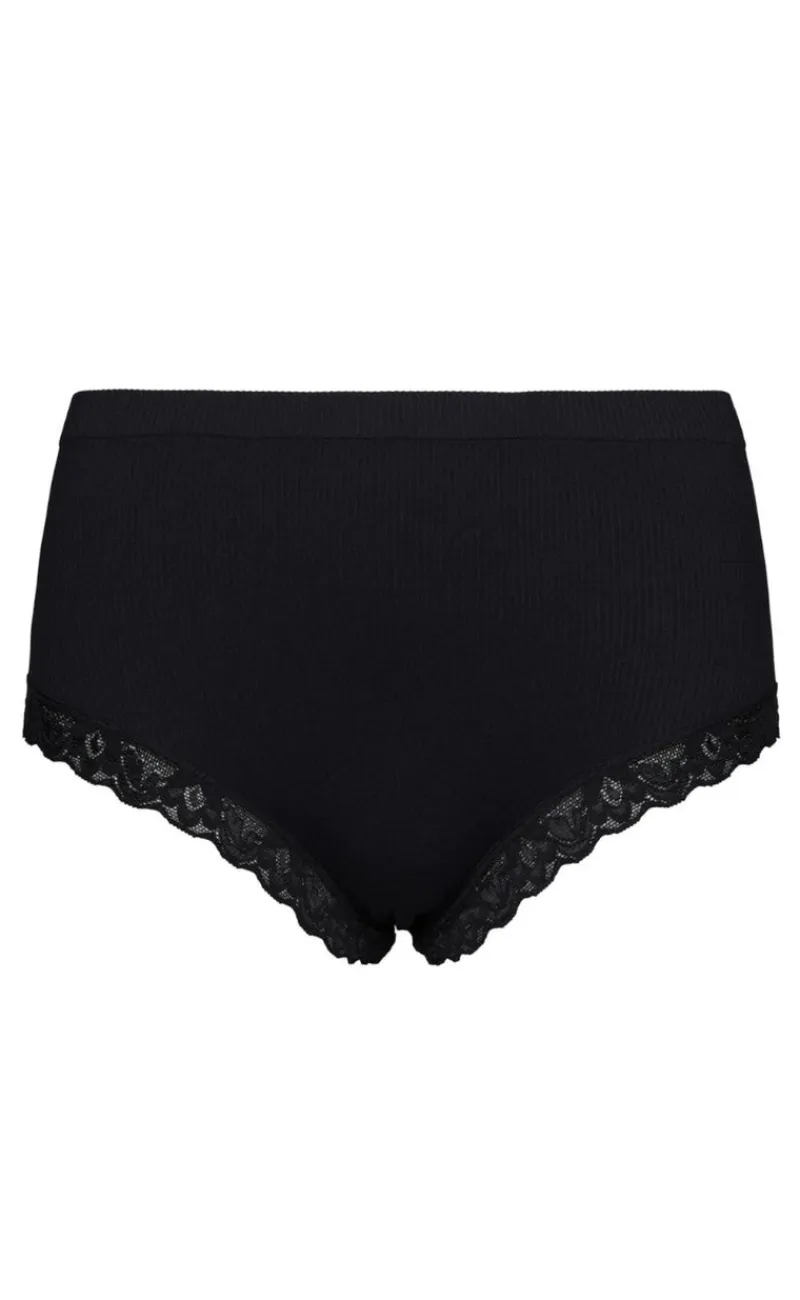Søde trusser i sort fra Tim & Simonsen. Trusserne er lavet i et strækbart og ribbet materiale, så de er super behagelige at have på. De har fine blondedetaljer.