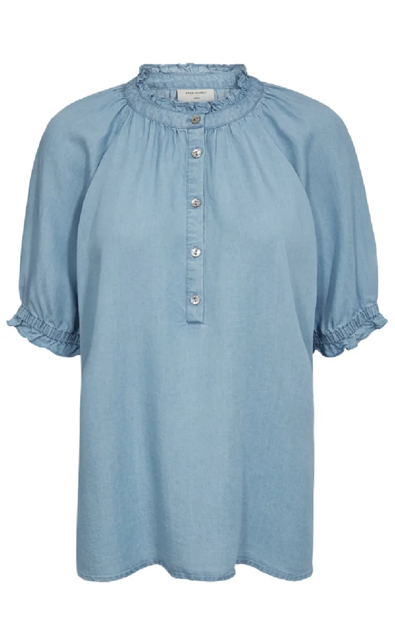 Sød bluse fra Freequent i blå.