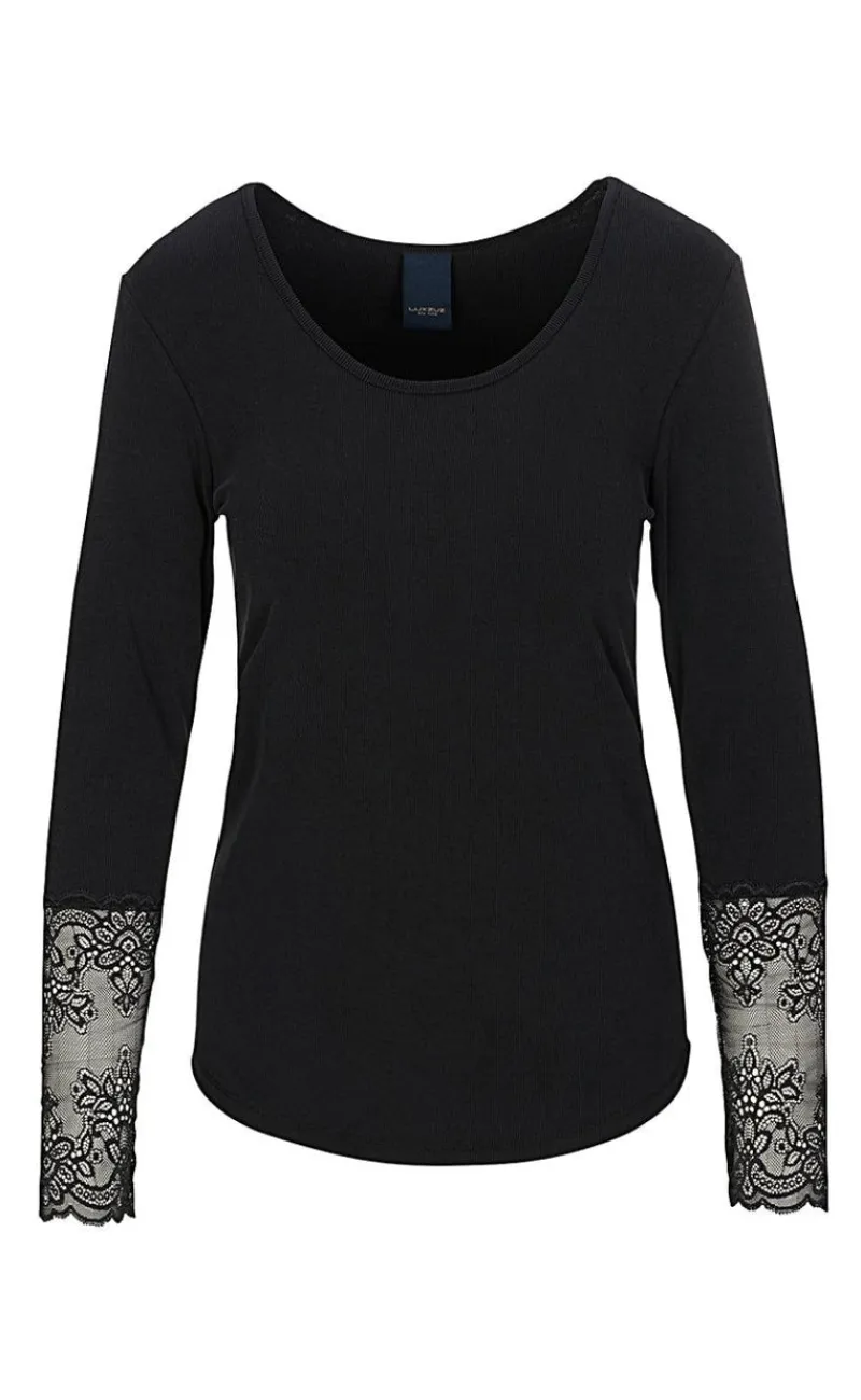 Klassisk langærmet fra One Two Luxzuz i sort, med blonde ved ærmerne.