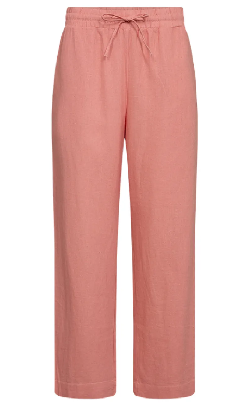 Lækre hørbukser fra Freequent i en flot coral farve.