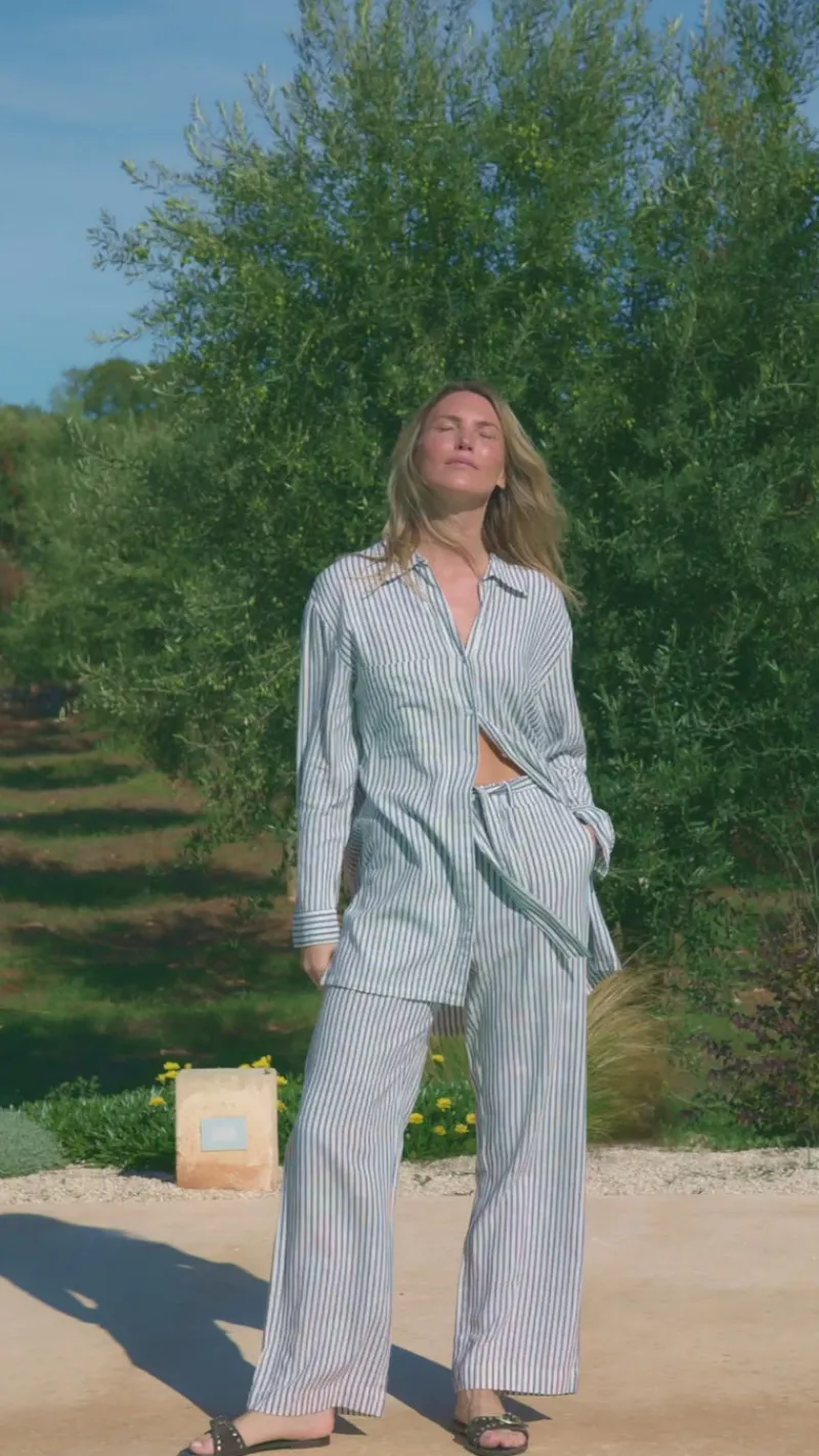 Stribede bukser fra Freequent i blå og hvid.