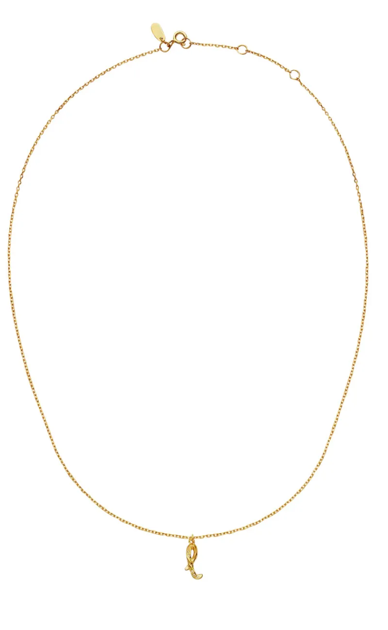 Halskæden har en flot vedhæng med bogstavet L.