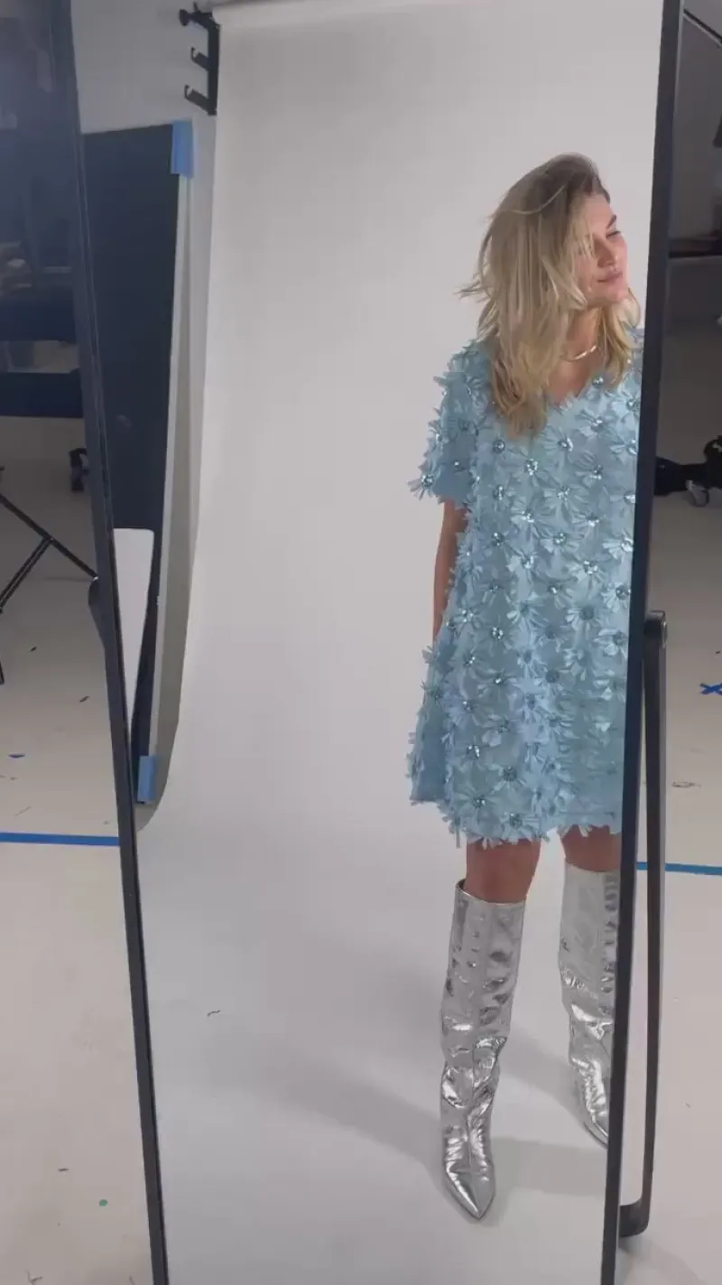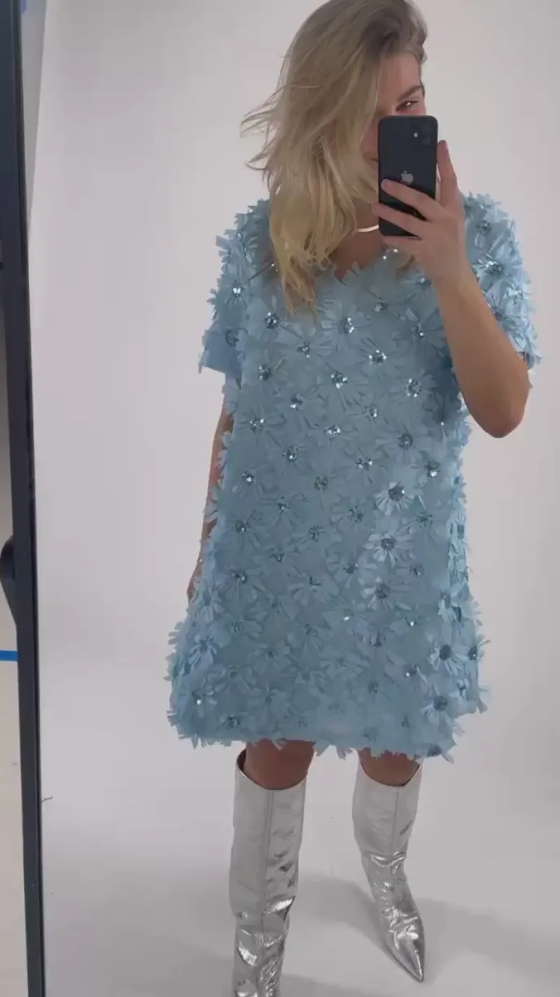 Kjolen har fine 3d blomster som giver et fint præg af forår.