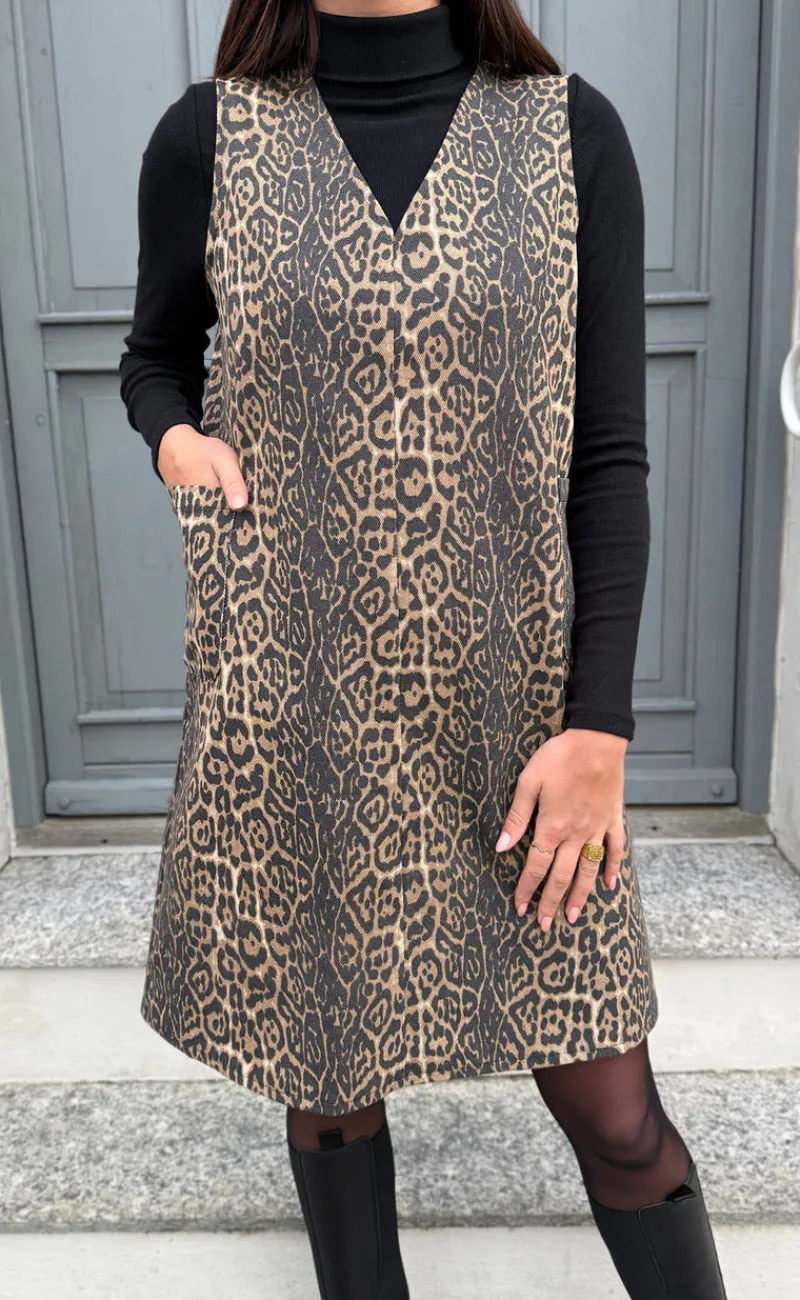 Smart spencer-kjole fra INA Copenhagen i leopard denim.