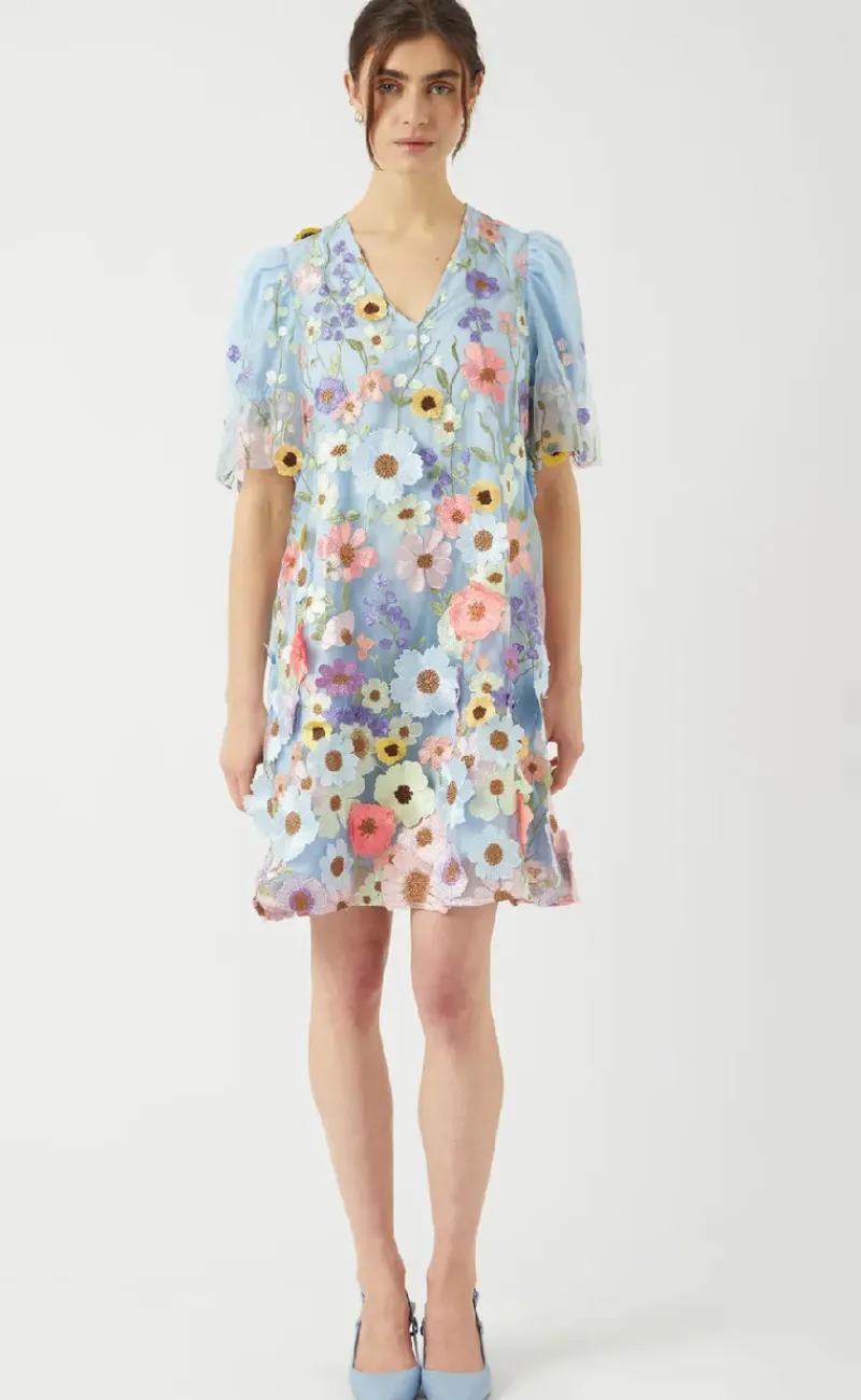 Kjolen har fine 3d blomster som giver et fint præg af forår.