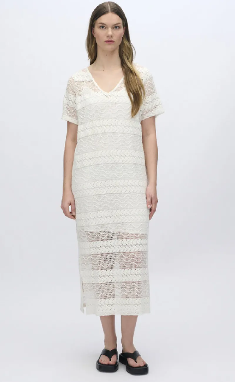 Sød midi kjole fra Moves i hvid, i et flot design.