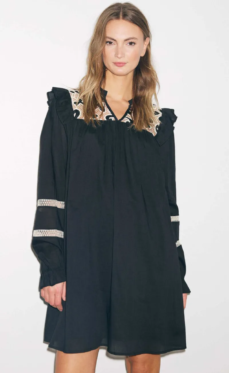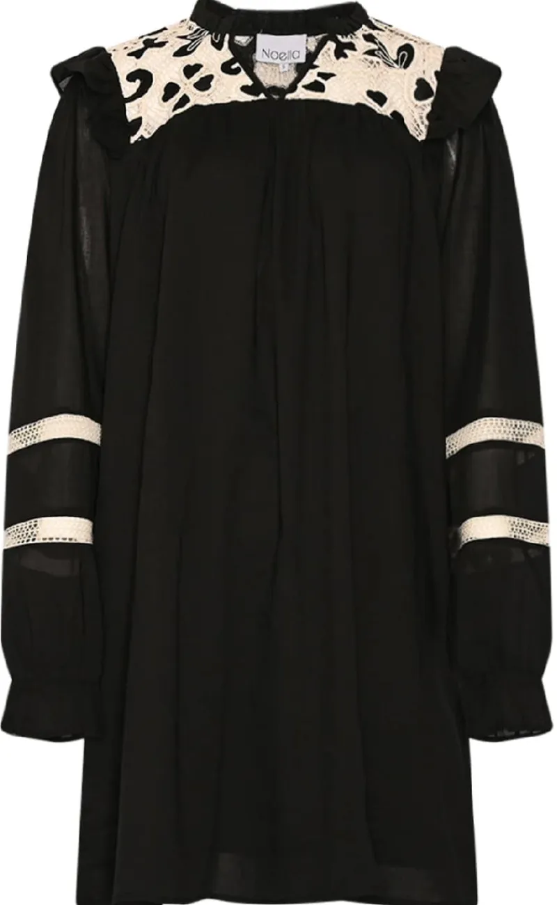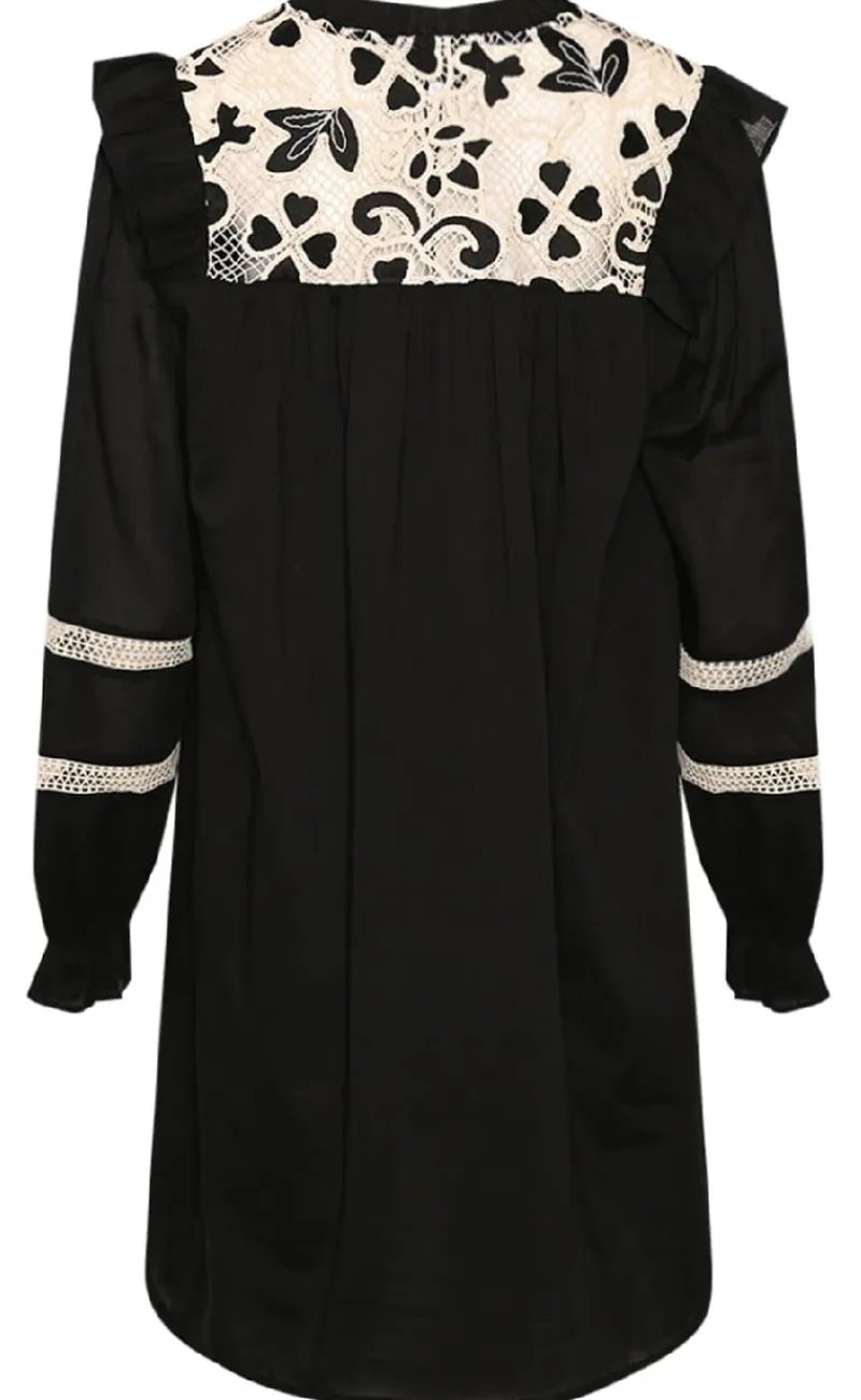 Løs midi kjole fra Noella i sort med blondedetaljer.