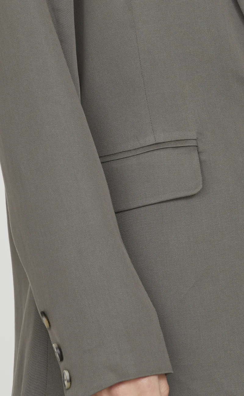 Feminin blazer i grå.