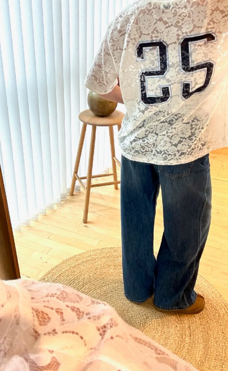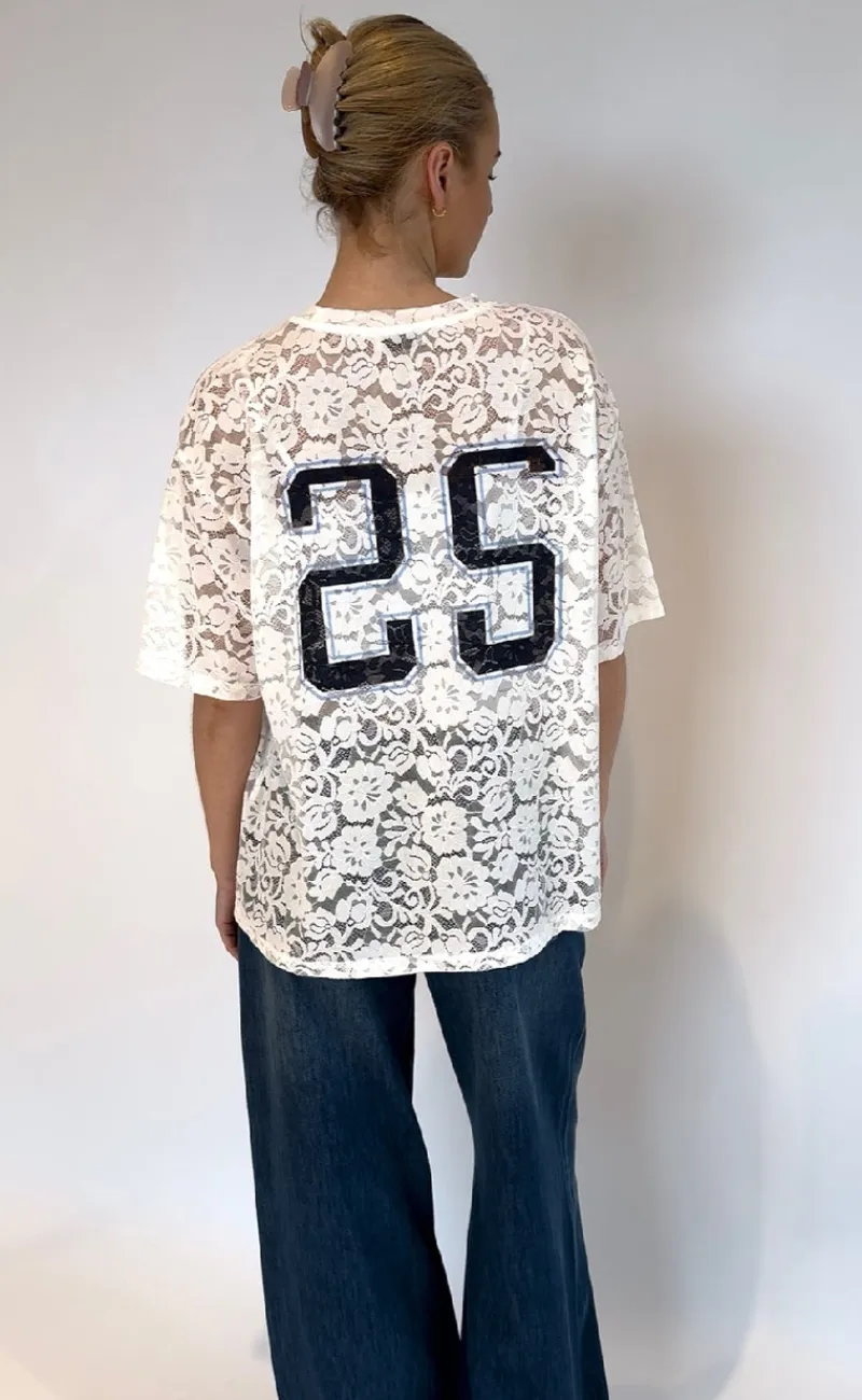 Flot og lækker blonde t-shirt fra Love & Divine i hvid, med “25” stående på ryggen.