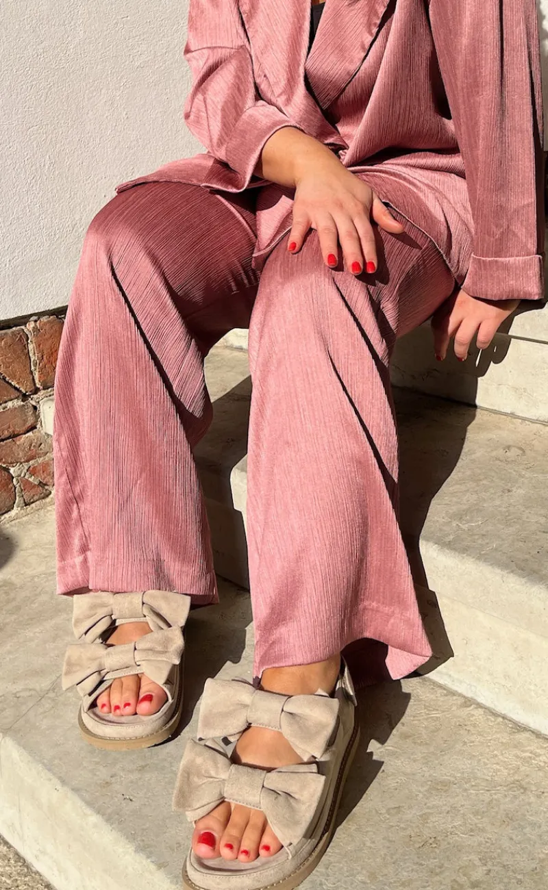 Flotte slip on sandaler fra Copenhagen Shoes i beige med sløjfer.