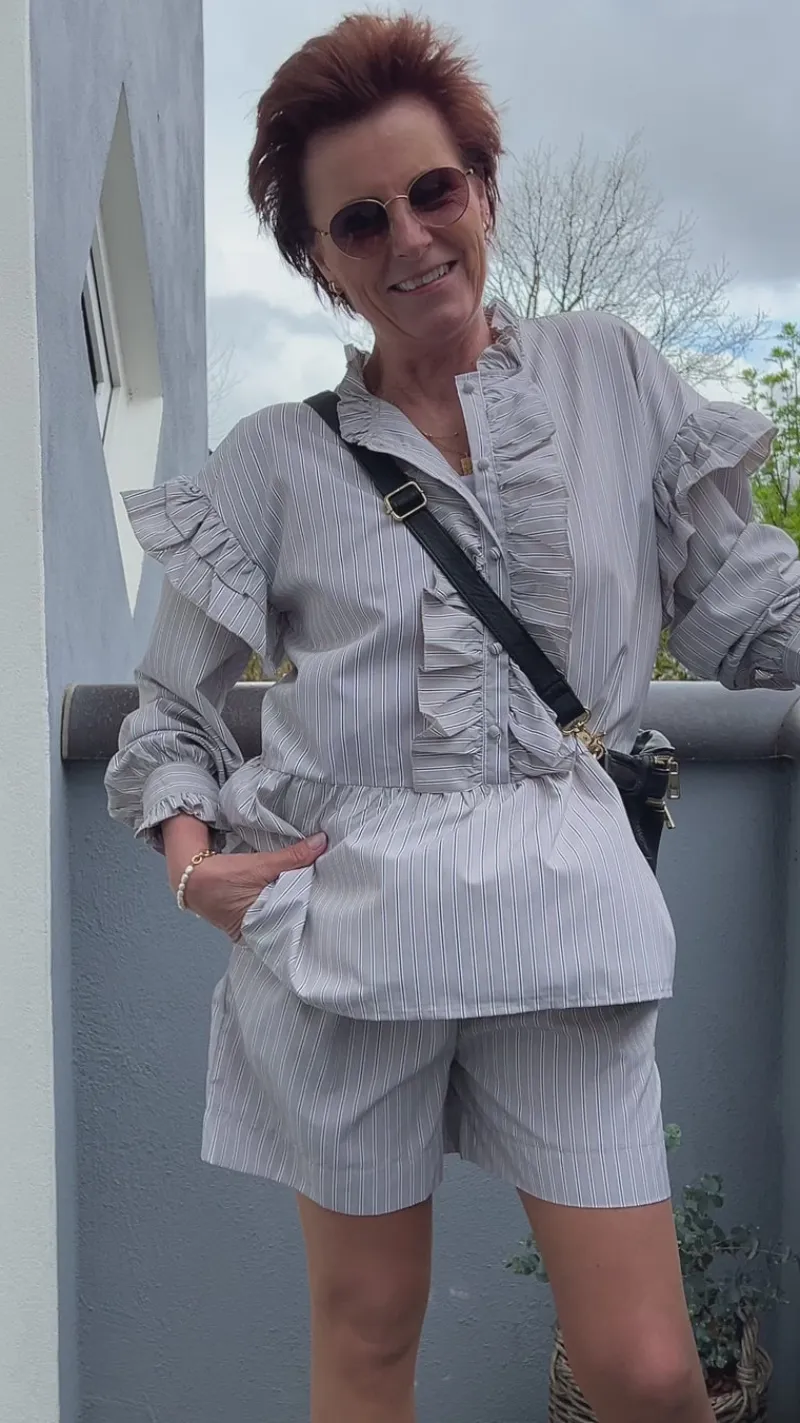Shortsene er behagelig at have på, og er oplagte at style med matchende INA Copenhagen Skjorte – Frida – Grey Striped.
