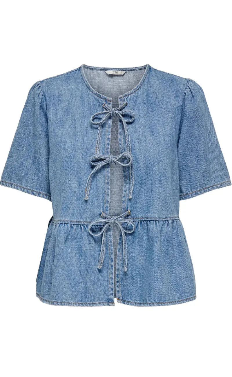 Sød skjortebluse fra ONLY i lyseblå denim.