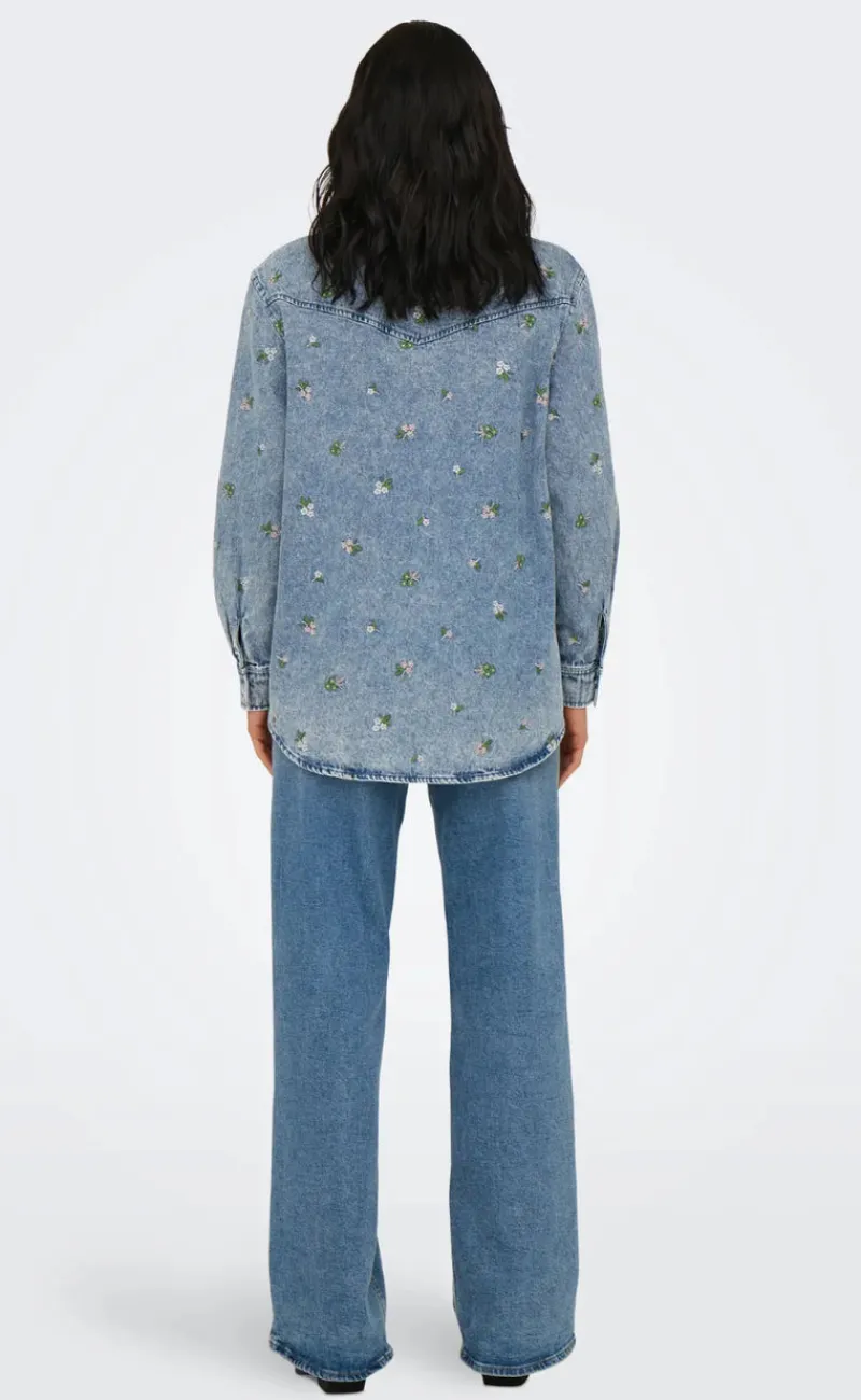 Farve: Light Blue Denim FLOWER EMB