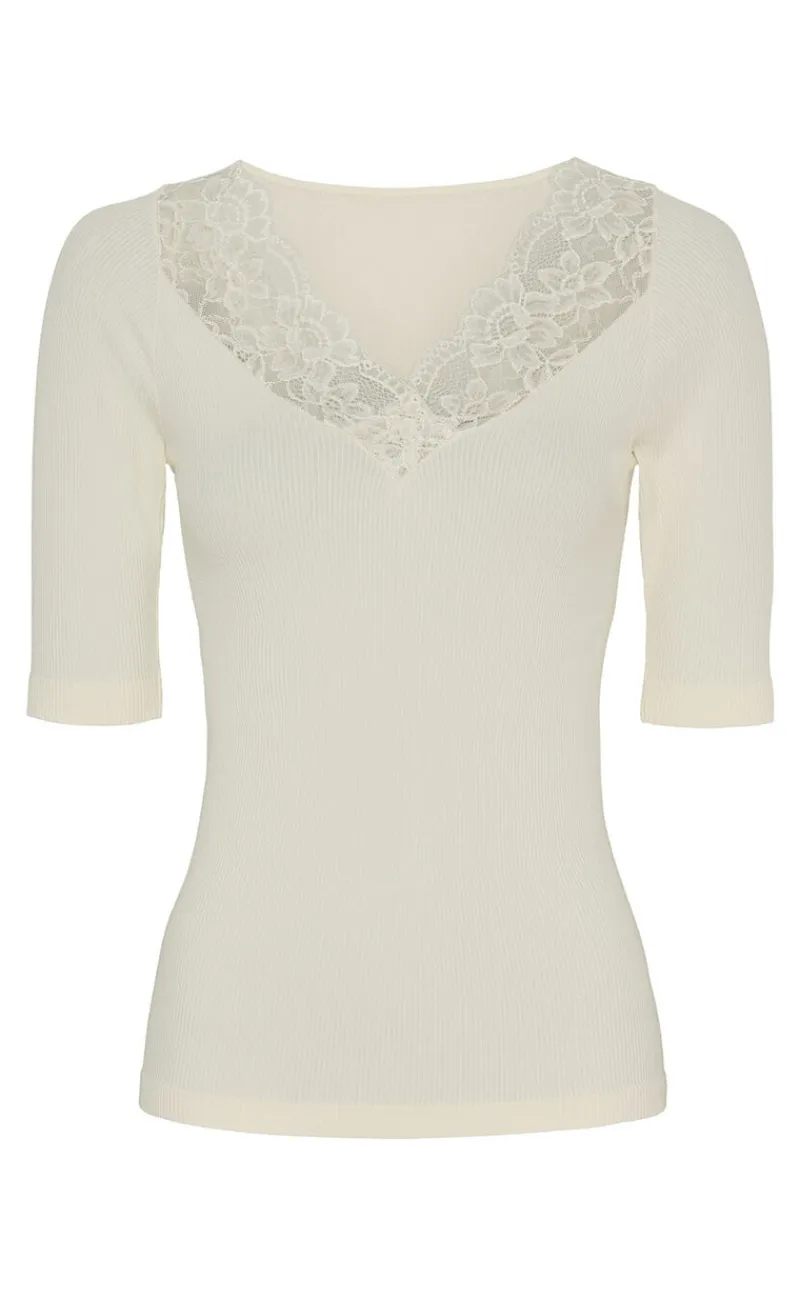 Flot rib top fra Tim o& Simonsen i en beige nuance, med flotte blonde detaljer.