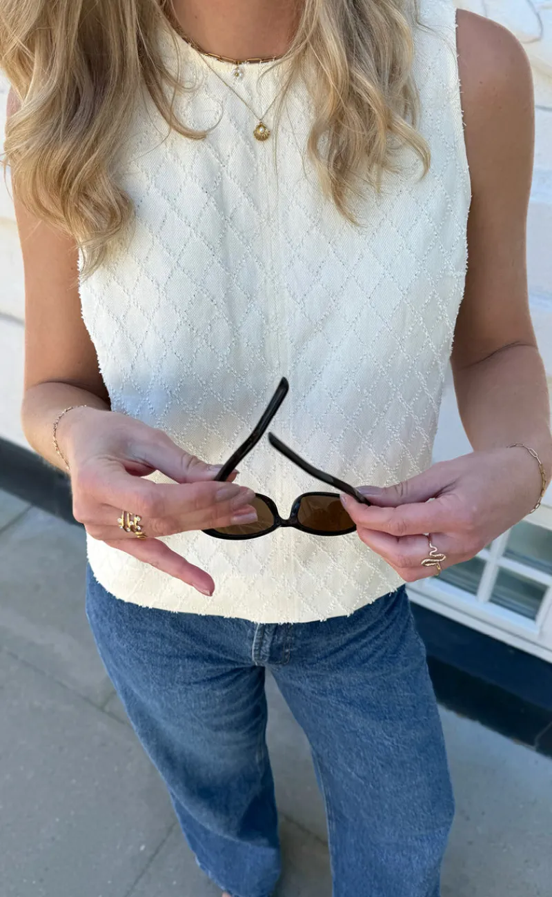 Flot denim top fra INA Copenhagen i off white med det fineste hul-mønster.