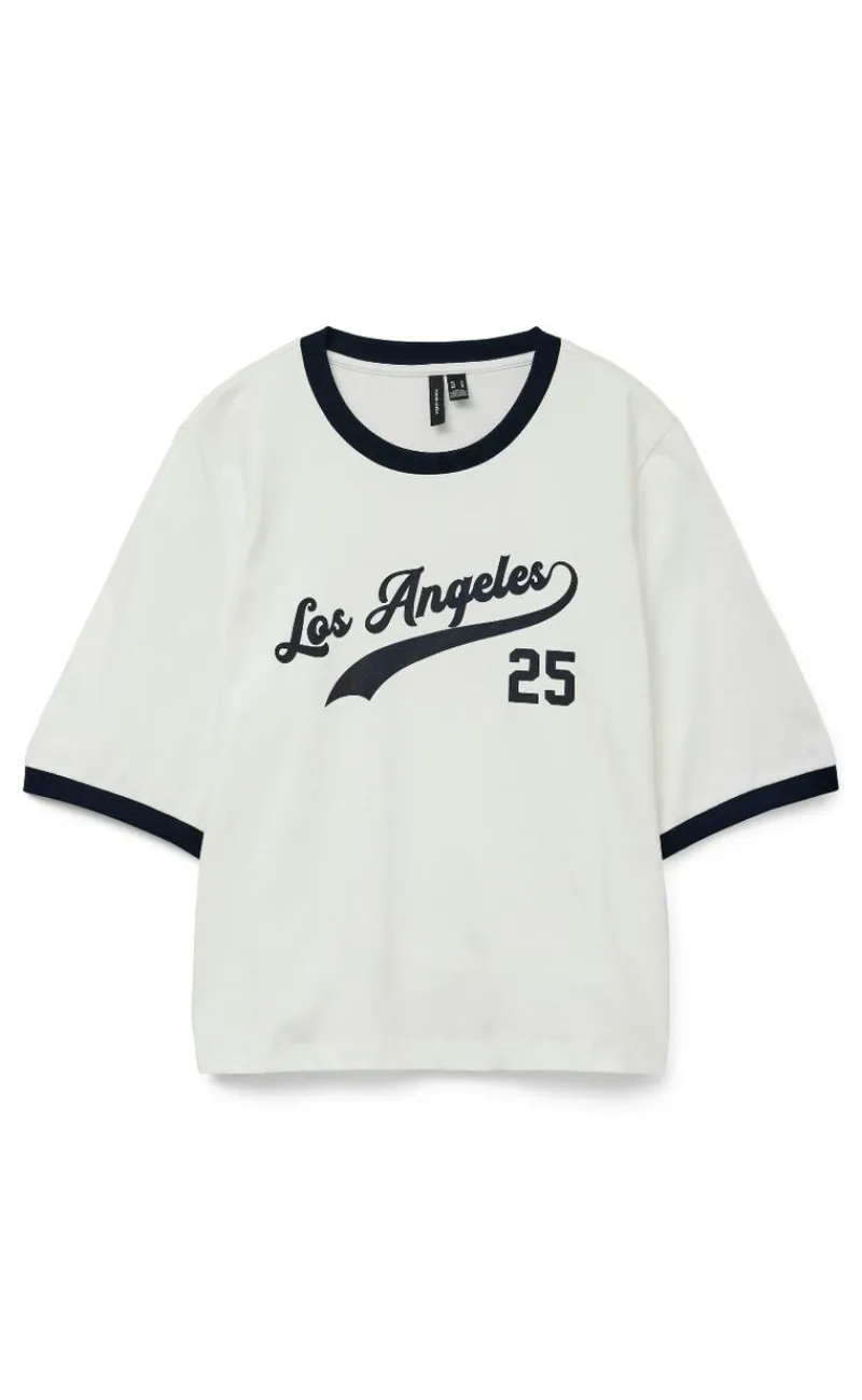 Pæn t-shirt fra vero moda i hvid og navy blå.