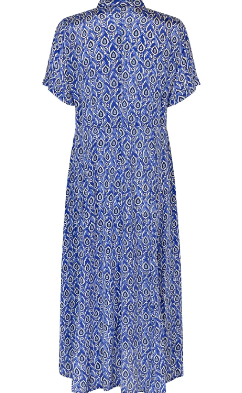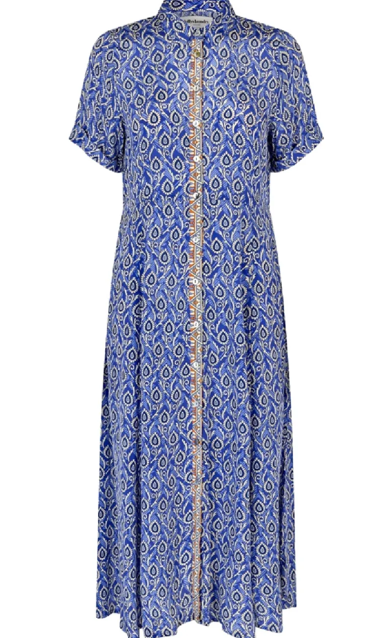 Elegant skjortekjole fra Lollys Laundry i et blåt paisleyprint.