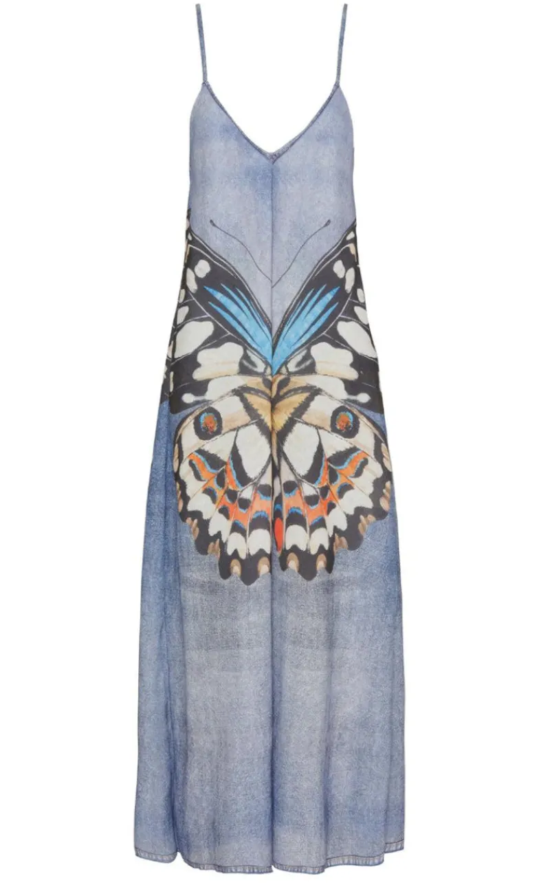 Flot kjole fra Marta Du Chateau i blå med en sommerfugl.