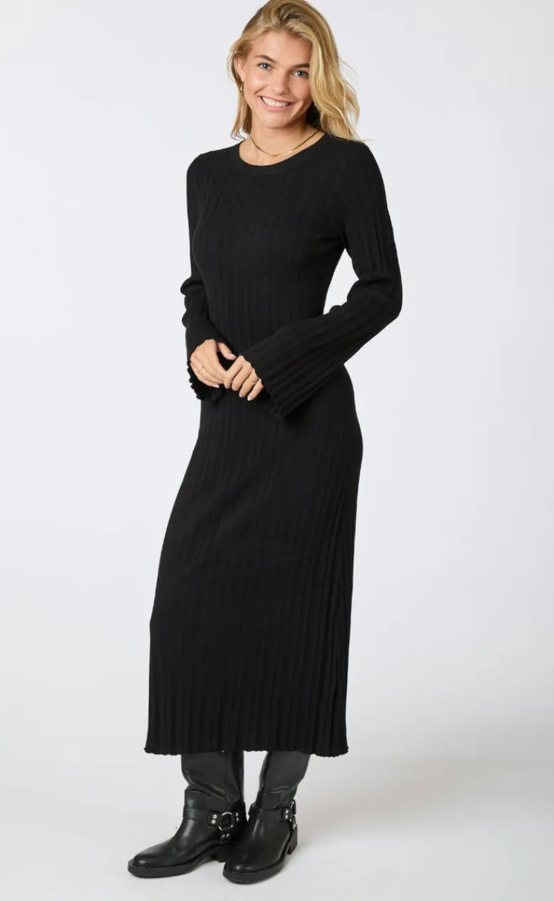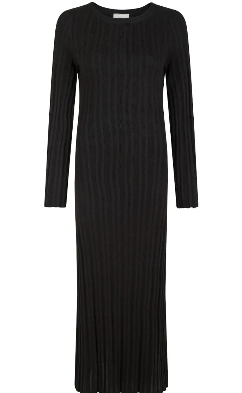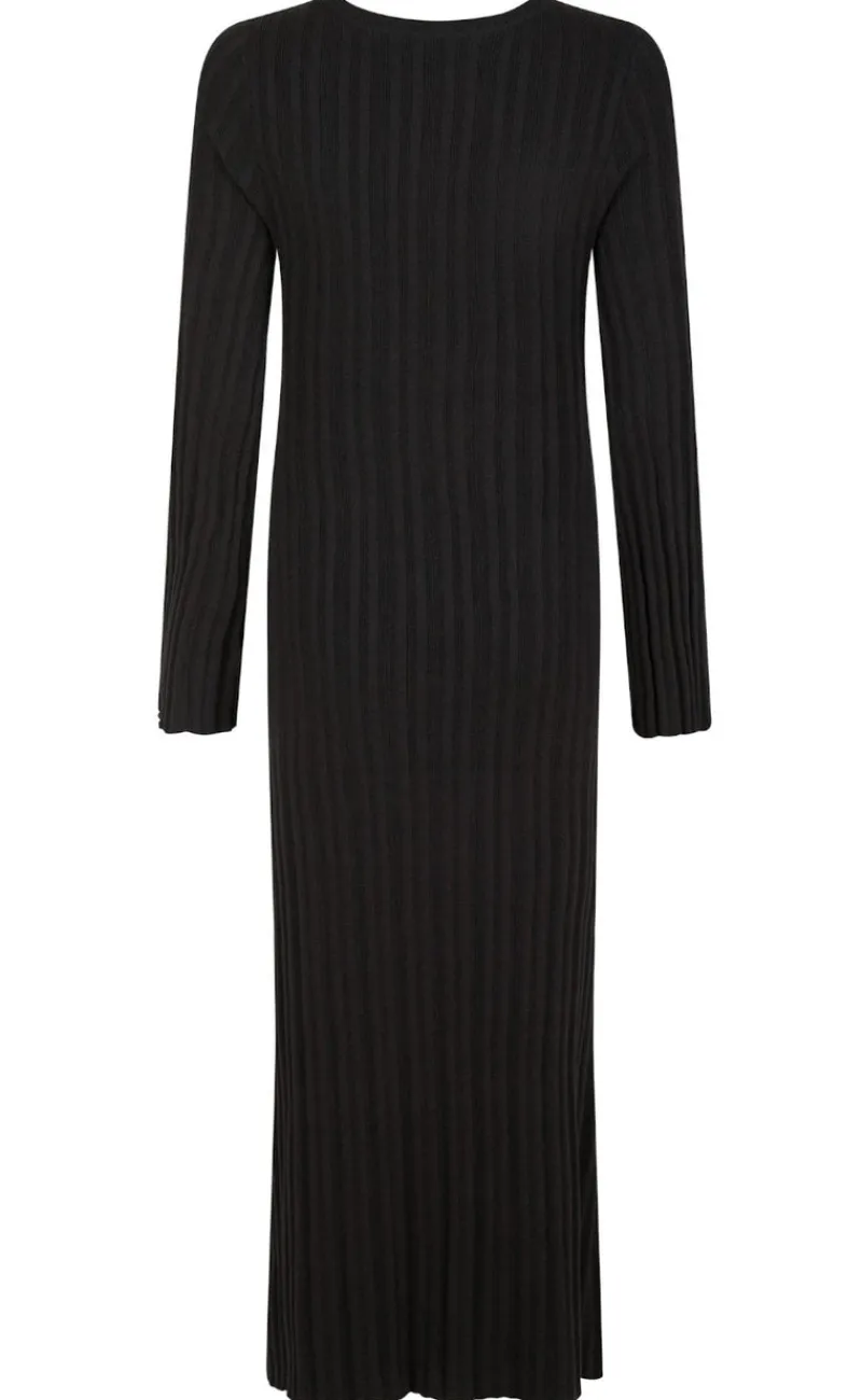 Lang strik kjole fra Neo Noir i sort i en ribbet kvalitet.