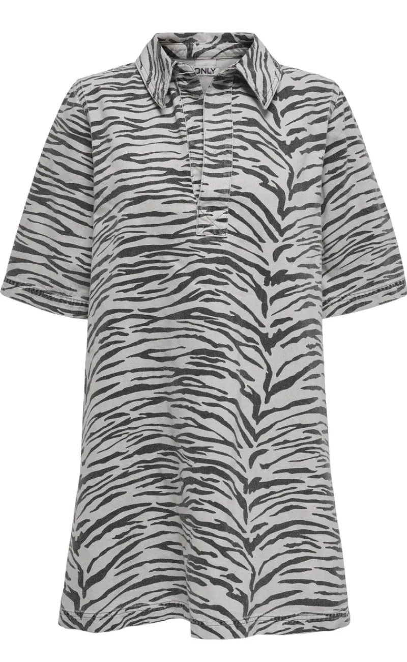 Style nummer: 15355559-Gry Zebra Denim Kjole – Only