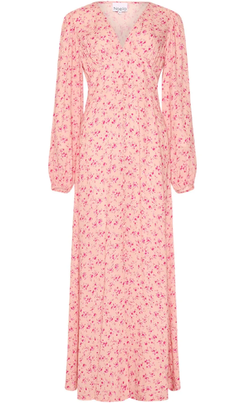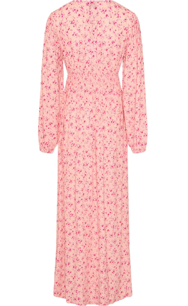 Feminin maxi kjole fra Noella i et lyserødt print.