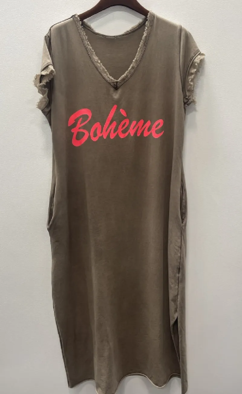 Afslappet kjole fra Marta Du Chateau med skrift fortil.