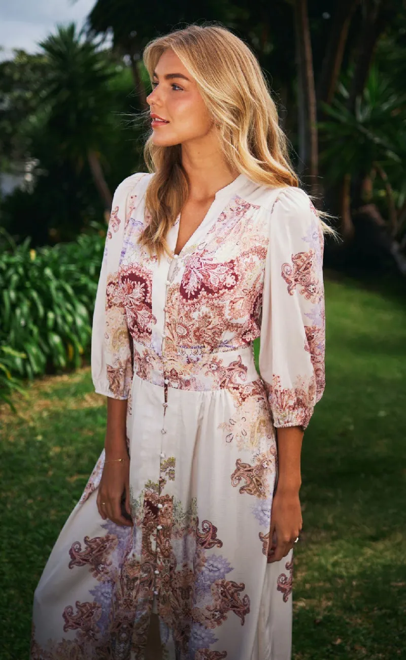 Elegant maxi kjole fra Neo Noir i et sødt paisley-print.
