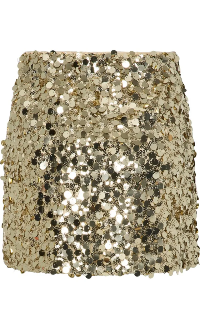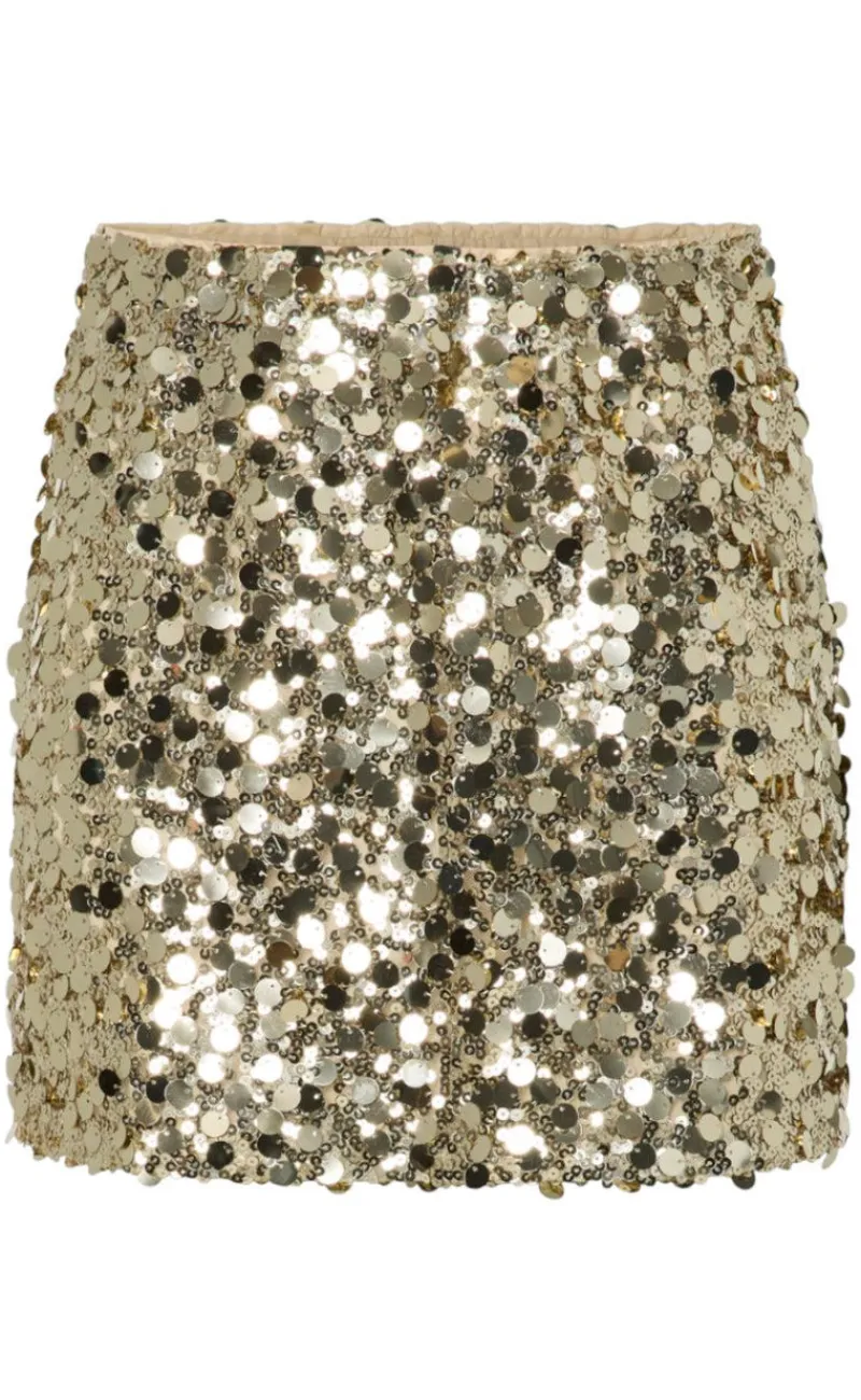 Festlig nederdel fra Pieces i guld som er dækket med smukke palietter.