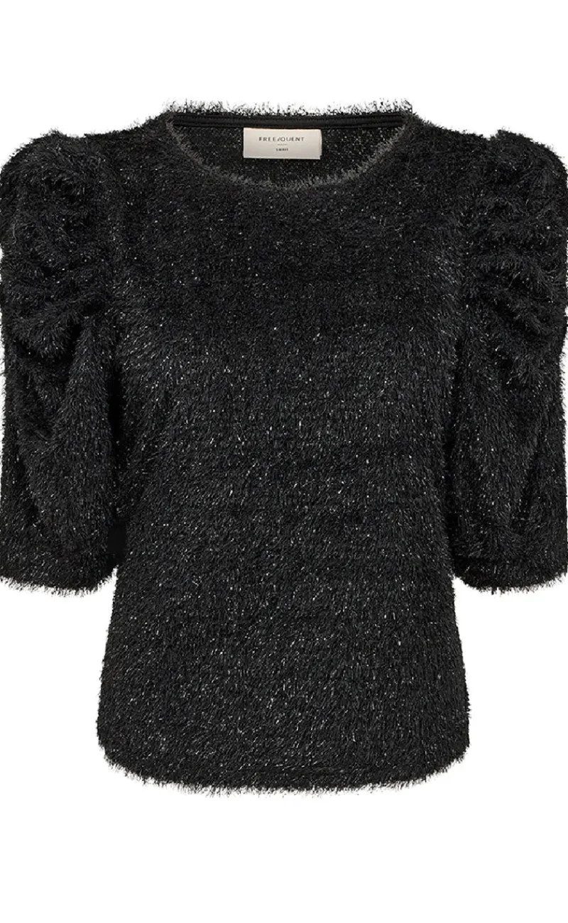 Festlig bluse fra Frequent i sort, med en fin glimmer effekt.