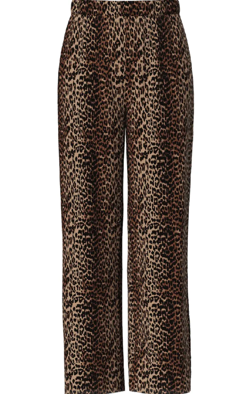 Behagelige bukser fra Pieces i en plisse kvalitet og et leoprint.